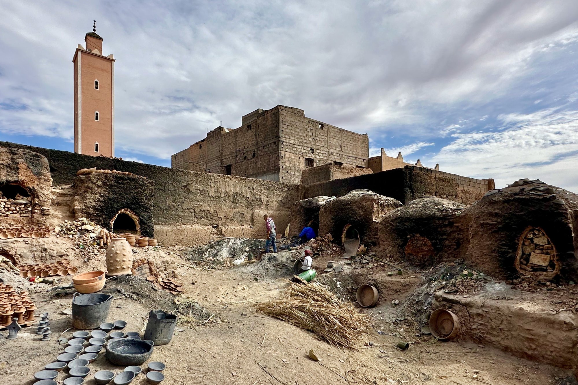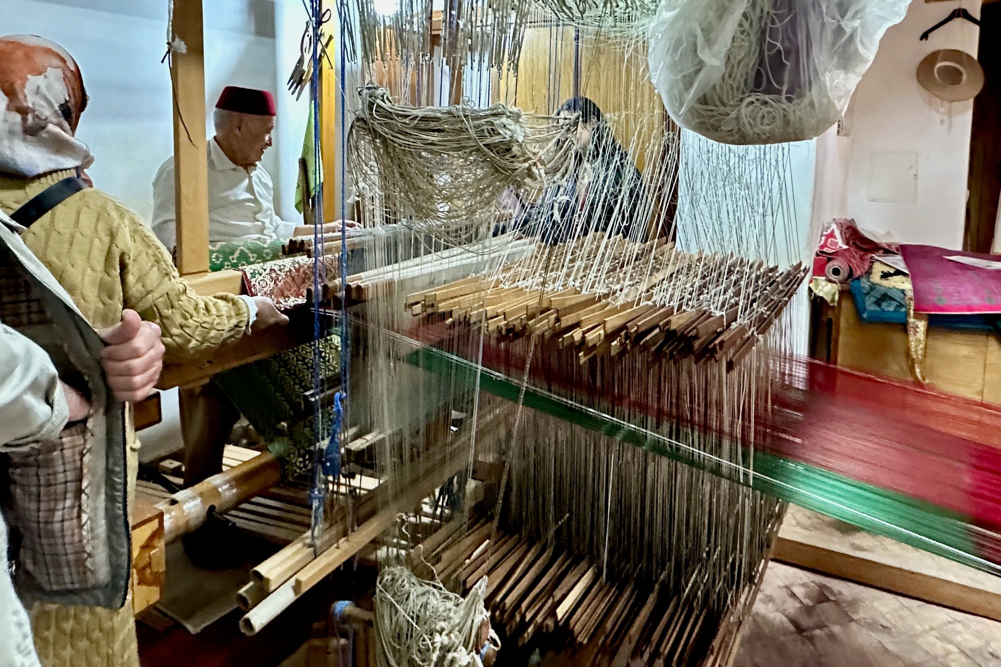 Evidence of the earthquake that struck the area near Marrakesh in 2023. I don’t mean unsightly rubble (though there was, of course, some of that, if less than I expected) – I mean the evidence of the hardships local people have suffered as a result. As just one example, the once magnificent Kasbah of Telouet was severely damaged in that earthquake. As a result, tourists can only visit the exterior (and many people skip it entirely) and a once-vibrant community supported by tourists is now struggling. Here’s a glimpse of what remains of the Kasbah of Telouet. https://cimg1.ibsrv.net/gimg/www.fod...8500c350a.jpeg Evidence of drought in parts of Morocco. An area south of Casablanca to Essaouira (and beyond) had been suffering a multi-year drought. Roads were lined by parched fields and dying trees. Even drought-resistant eucalyptus were clearly failing and crops had been badly affected. I took this picture from the bus from El Jadida to Essaouira. https://cimg8.ibsrv.net/gimg/www.fod...114d1ae7b.jpeg Evidence of the hardship of life for many Moroccans. For example, a stop at a pottery cooperative in Tamegroute seemed to me to give glimpses into how hard it is to earn a living in parts of this country. I can’t imagine that OSHA would approve of this work site! BTW, the structures with arched entries are kilns. https://cimg6.ibsrv.net/gimg/www.fod...0826b5190.jpeg Vanishing arts. Morocco is a place with centuries of artistic traditions, and many of these traditions are, to my delight, being maintained. But not all. While in Fez, I took a fascinating half-day tour during which I was introduced to several artisans. (Arranged with Culture Vultures, I highly recommend this tour!) A few of the men I met (yes, they were all men) were, quite literally, the last in Fez – or even in all of Morocco – to practice certain crafts. The last man to adorn saddlery using traditional techniques, the last maker of damascene, the last man to weave brocade without the advantage of a Jacquard loom…. Of course, some of these changes are a mark of progress: the children of several of these artisans, who might have taken over their traditional family endeavors, have gone to college and so have chosen other careers. But conversations with these artisans had a bittersweet quality: Even the proudest of them acknowledged sadness about the impending loss of their traditions. Here's the last weaver of brocade in Morocco, Abdelkader Ouazzani. The masses of knotted strings are what control the placement of the warp threads. One can see why most weavers switched to a Jacquard loom! https://cimg0.ibsrv.net/gimg/www.fod...26e7920be.jpeg Next up: Some things that made tourism in Morocco a bit irritating from my perspective…. |
