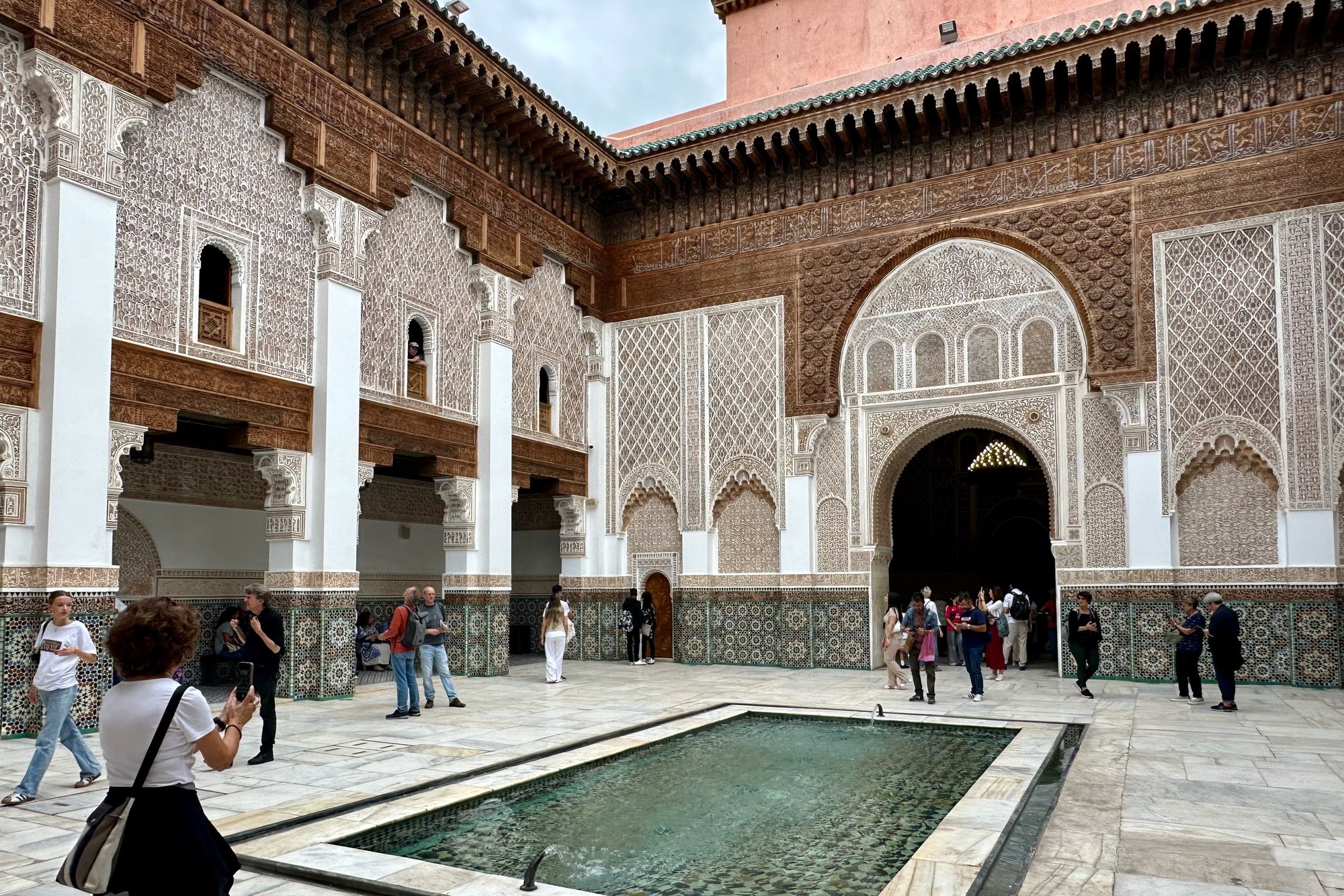 What I liked most: My desire to see Moorish architecture and ornamentation was a driving force behind my decision to make Morocco a priority, and I was not disappointed! Palaces, riads, medersas (aka madrasas ... there are various spellings for Islamic schools), tombs… There were stunning mosaics and stucco work and woodwork and paint, all with exquisite attention to detail. I’ve already shown a photo of Meknes’s Dar Jamai and just a bit of Marrakesh’s Bahia Palace; now I’ll offer just a few more examples. (Oh, it has been hard to choose! I hope I'm not posting too many pictures.) Here's a view of the Ben Yousef Madrasa in Marrakesh: https://cimg7.ibsrv.net/gimg/www.fod...6a016914f.jpeg And the detail of the ornamentation around its mihrab: https://cimg9.ibsrv.net/gimg/www.fod...55cc6ccf3.jpeg Also in Marrakesh, Dar el Bacha was richly ornamented: https://cimg1.ibsrv.net/gimg/www.fod...949ed2355.jpeg Here's a door frame from that same palace / museum: https://cimg4.ibsrv.net/gimg/www.fod...629c67323.jpeg Ceilings were often magnificent; here’s one in Fe's Palais el Glaoui: https://cimg1.ibsrv.net/gimg/www.fod...fd2580a3e.jpeg Incredible workmanship was evident even when roaming Fez’s medina – this canopy was over a doorway that wasn’t even marked! https://cimg7.ibsrv.net/gimg/www.fod...eb0b82ebb.jpeg And in Rabat, the interior of the Mausoleum of Mohammed V – built in a traditional style, but with modern materials -- is IMO utterly, breathtakingly glorious! https://cimg2.ibsrv.net/gimg/www.fod...fc7dc7d1d.jpeg Next up … more of what I liked most…. |