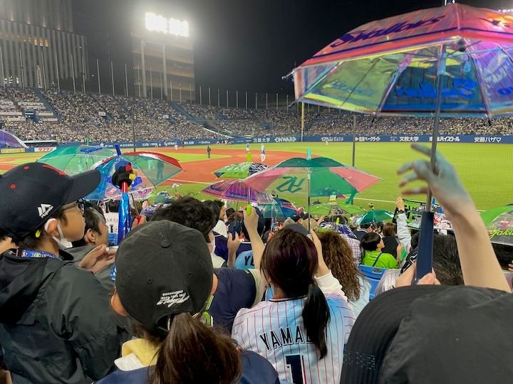 I've successfully purchased tickets for a Yakult Swallows game at the Meiji Jingu Stadium. We will be sitting in the hOme Outfield section. It's for the "cheering umbrellas"