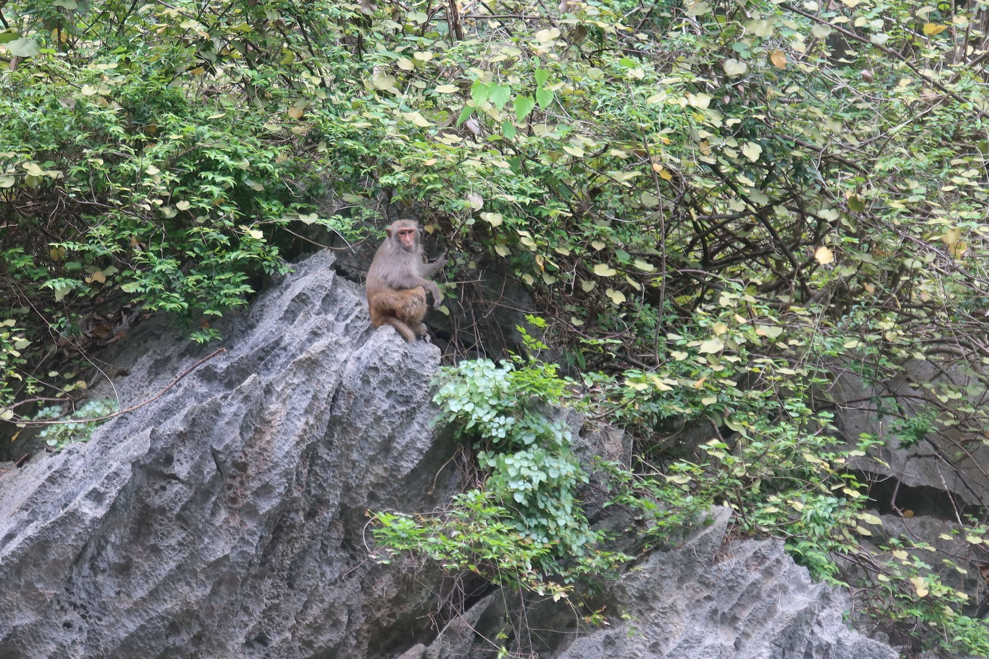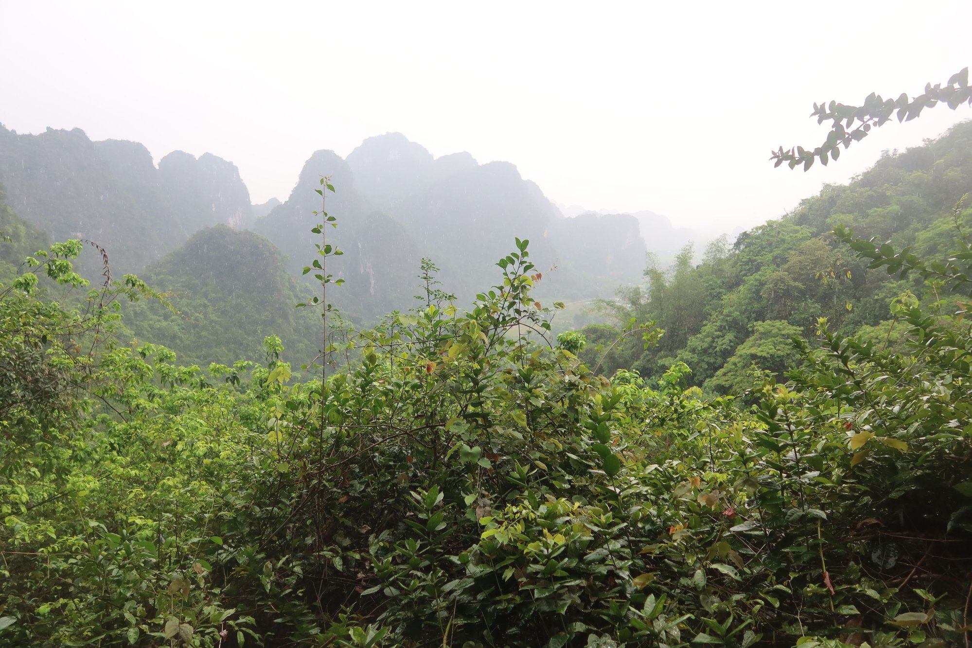 After the two temples, it was back to our hotel for some rest and relaxation before embarking on our afternoon hike of the surrounding countryside near our hotel. We hiked the mountain overlooking our hotel with the help of a local guide. The ascent through jungle, via man-made steps, took about 45 minutes. Along the way, the guide pointed out medicinal plants and explained its uses to us. During the hike up, we caught glimpses of the surrounding peaks. As we were making our way down the back side of the mountain towards the Sunshine Valley, the sky suddenly opened up. We were experiencing an isolated and unexpected thunderstorm, lasting just over half an hour. Luckily there was a limestone overhang, where we sheltered while the rain poured. We made our way down after the rain stopped, but moved very gently as the wet steps were slippery in spots. We reached the valley floor in about 45 minutes, and then moved through tall grasses towards the river. The original program had us picnicking by the river, but given the wet weather, we decided to take our afternoon snack and beverage after we returned to our hotel.