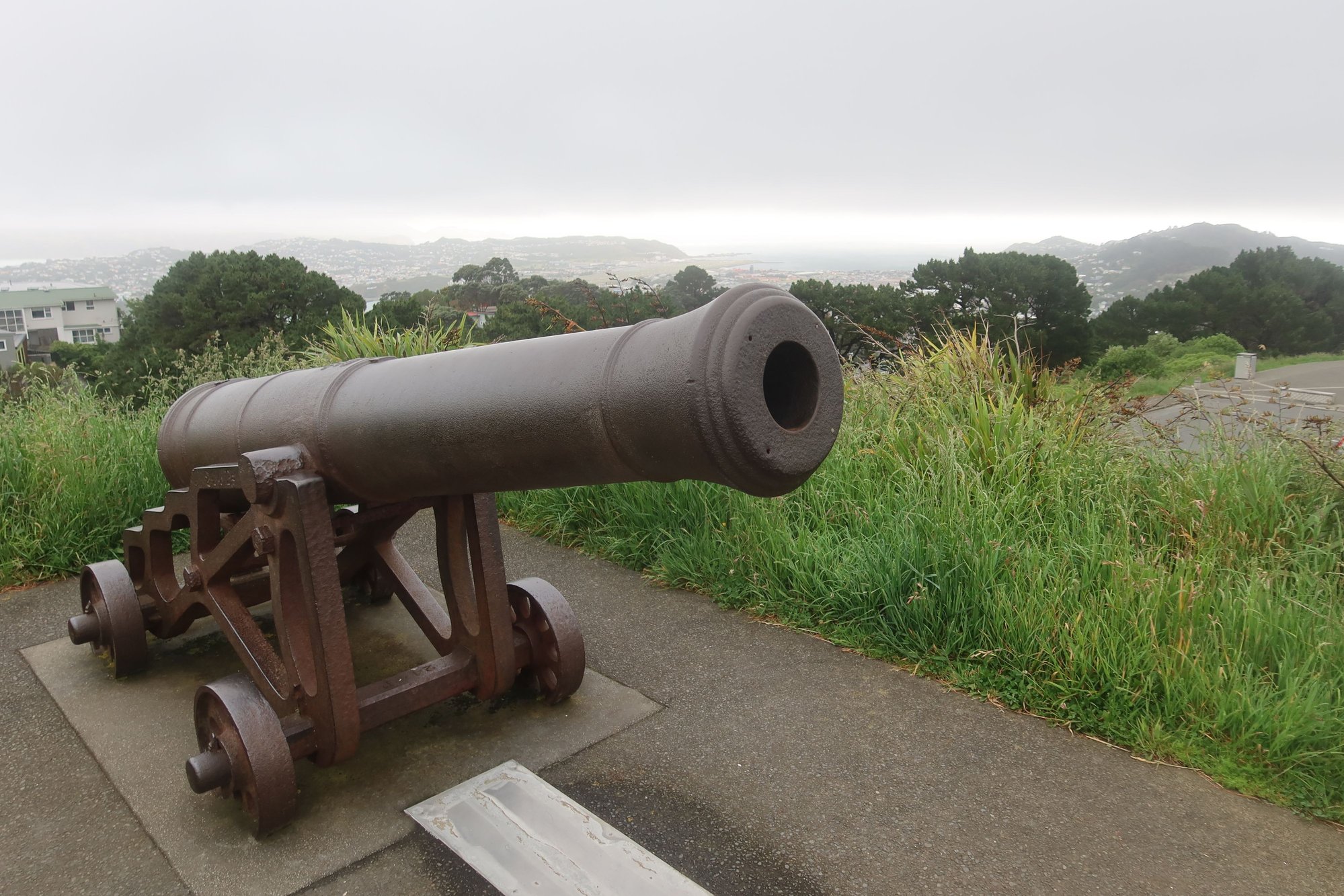 We spent the late afternoon wandering around downtown Wellington, doing some shopping, people watching, and coffee drinking. While we were enjoying our coffee, sitting by a window, we eyed one another - the rain stopped and the sky appeared to be less ominous. We checked the forecast and it was supposed to be dry for next few hours albeit still windy. We finished our coffee, dropped off our purchases at our hotel rooms nearby, and hiked up Mount Victoria. The way up took just under an hour, with glimpses of the city skyline throughout the gentle trek up. For those who prefer not to hike, there is at least one city bus, the number 20, that goes to the summit from the city center. At the top we were treated to awesome views of the city, the harbor, and the surrounding hillsides with its gorgeous homes. Oh, how beautiful is Wellington, even in the fog cover.