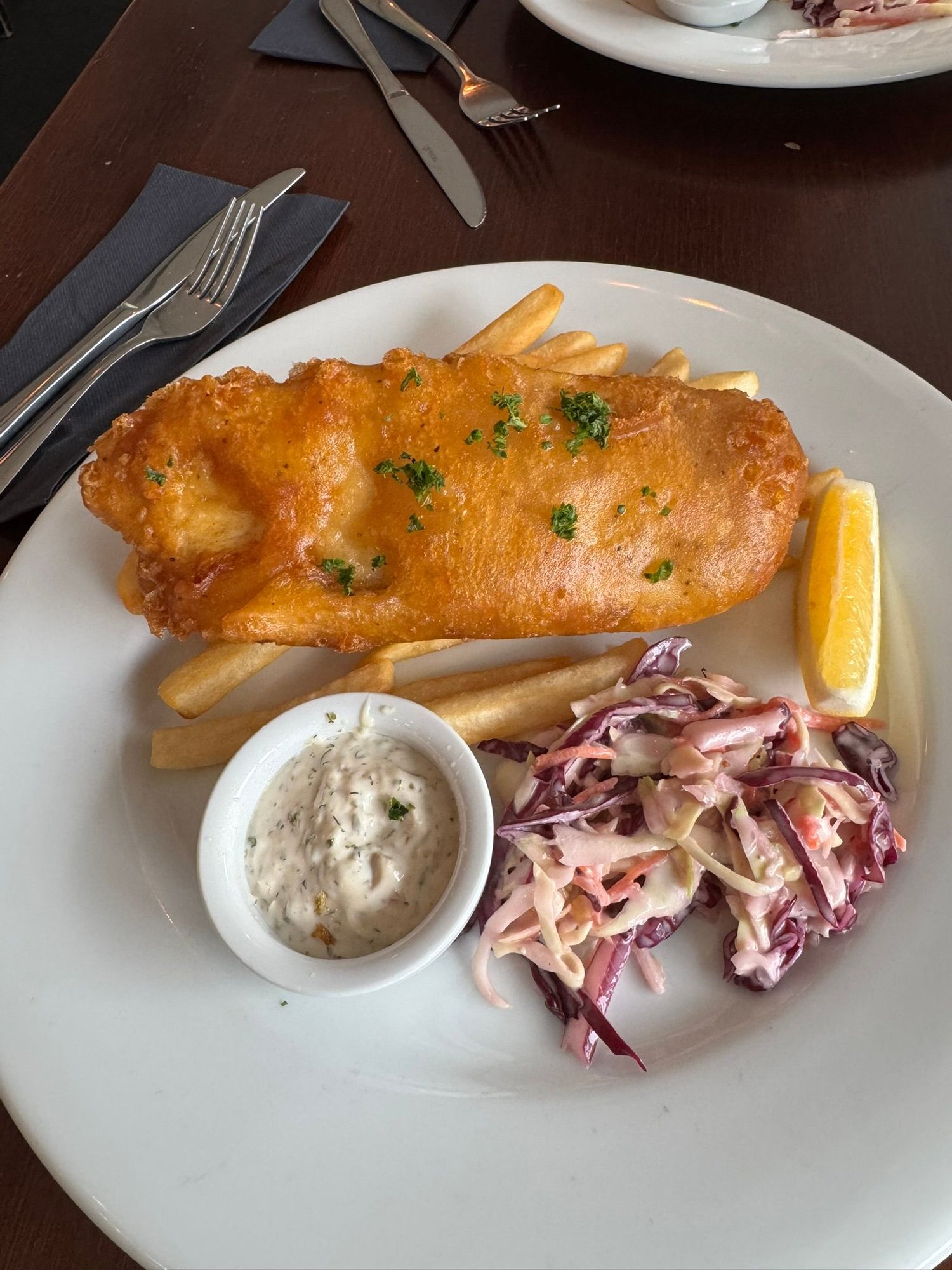 For dinner tonight at the Chamois Bar & Grill, we both had fish and chips. Another delicious meal!