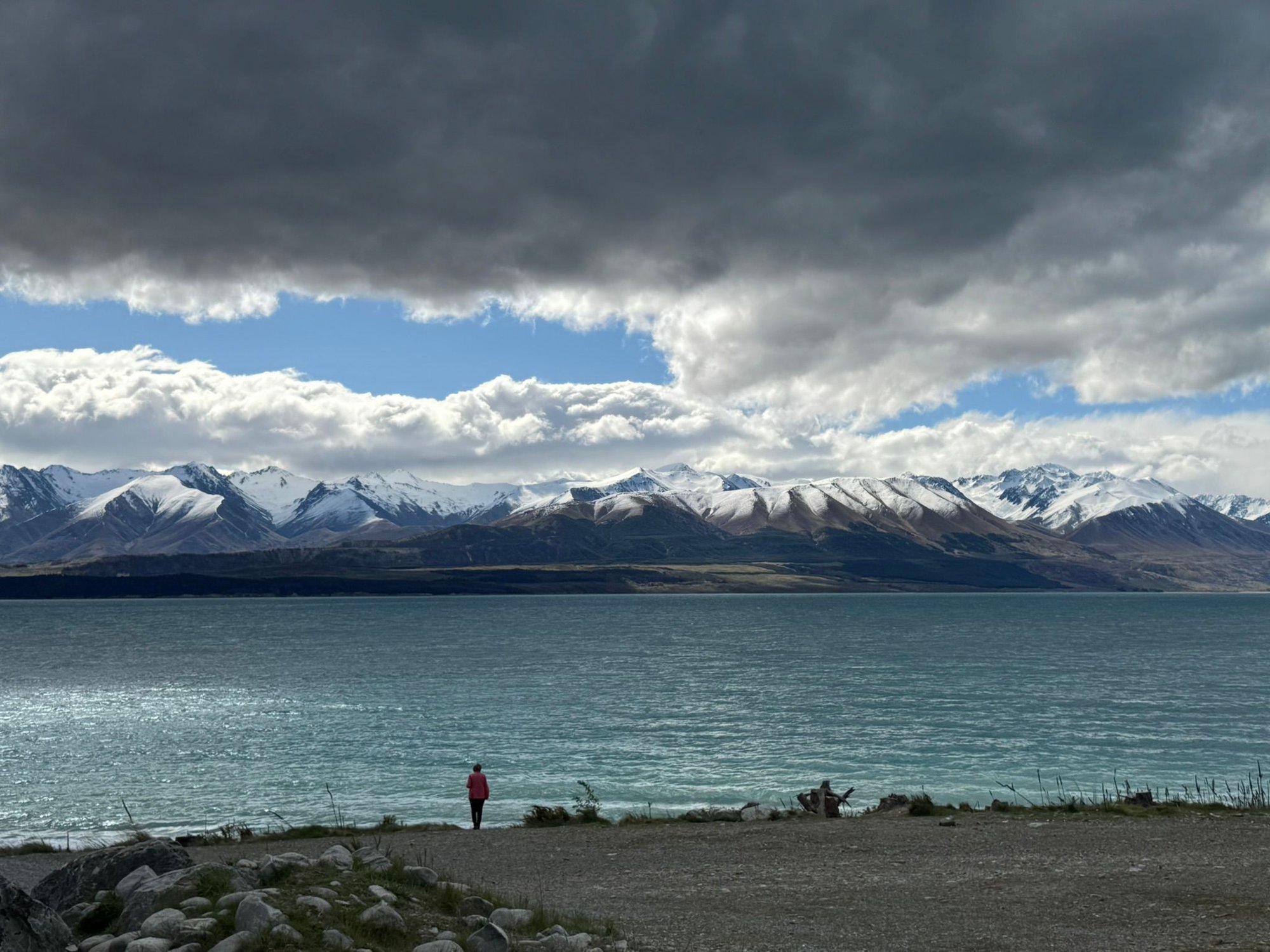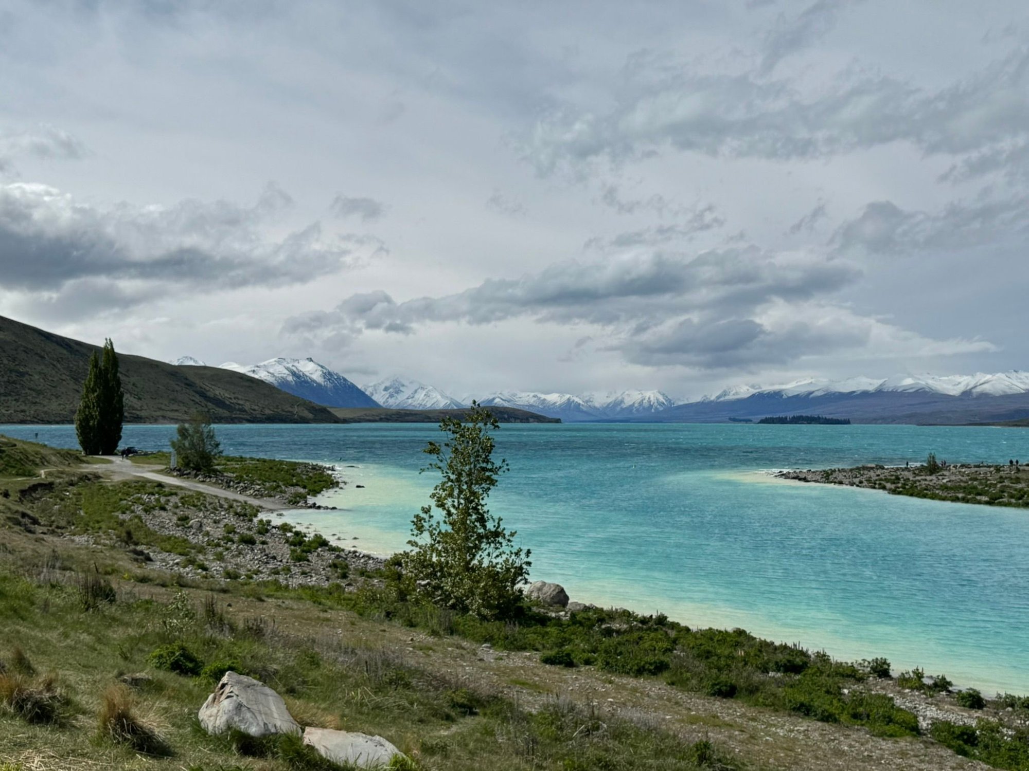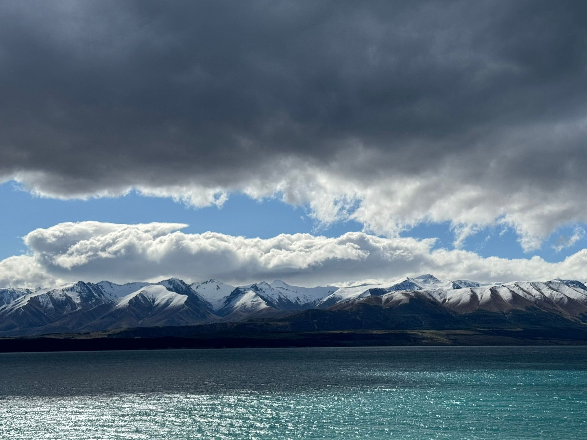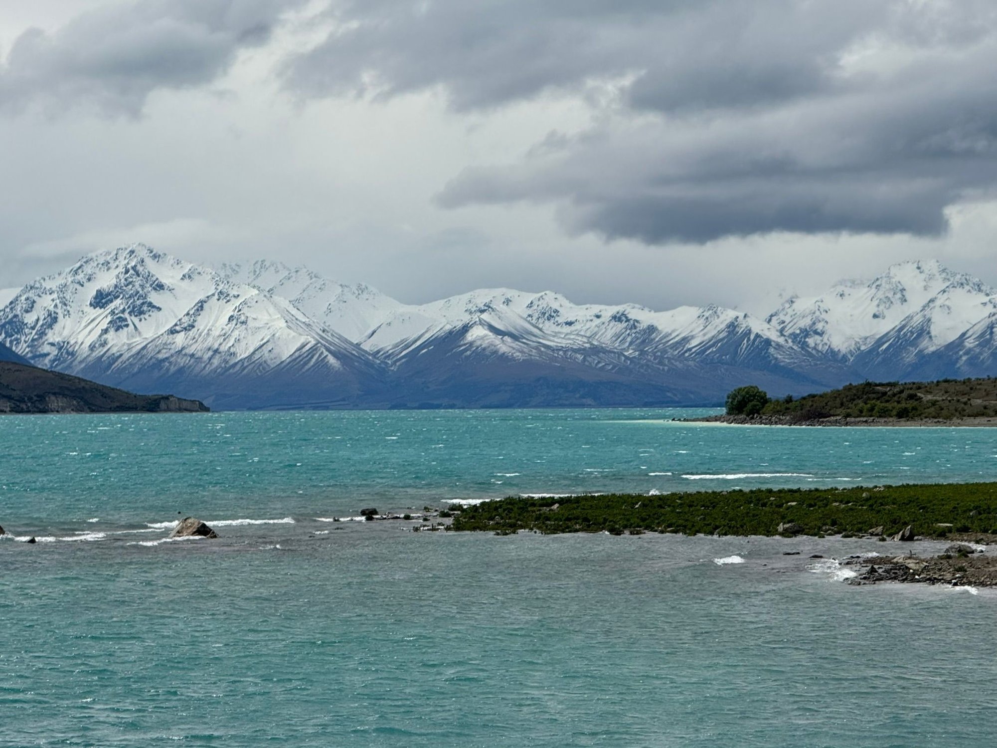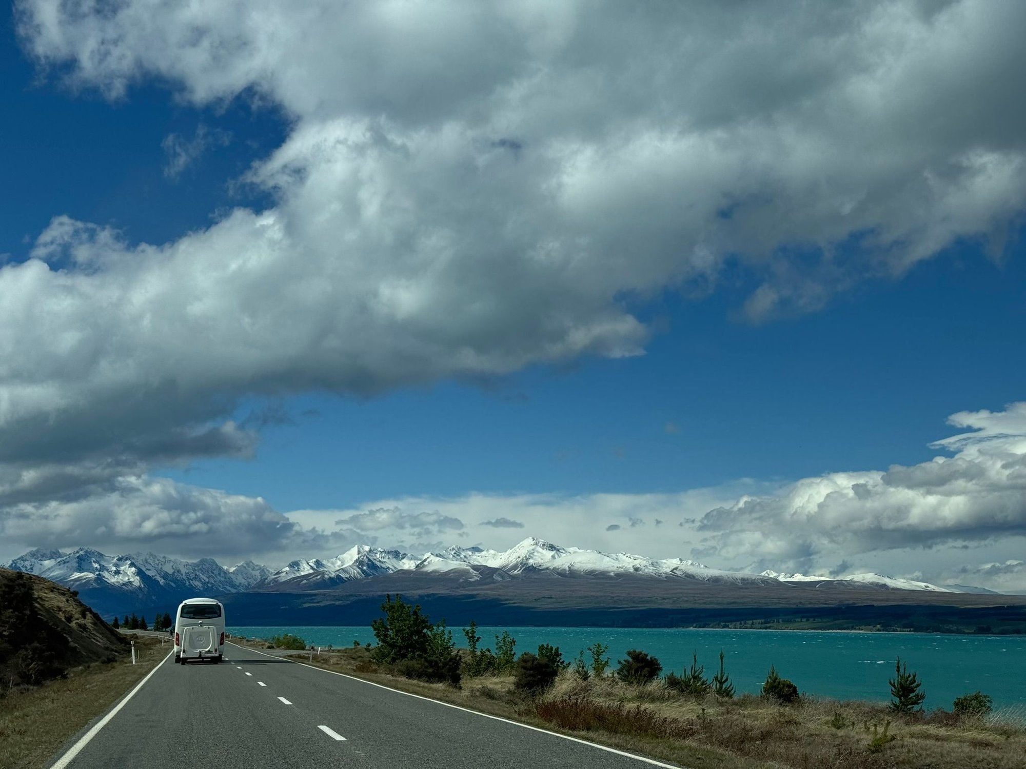 Lake Tekapo and Lake Pukaki are absolutely gorgeous with their different shades of turquoise and blue and with snow-capped mountains in the background. The road to Mt. Cook Village, SH80, follows Lake Pukaki all the way.