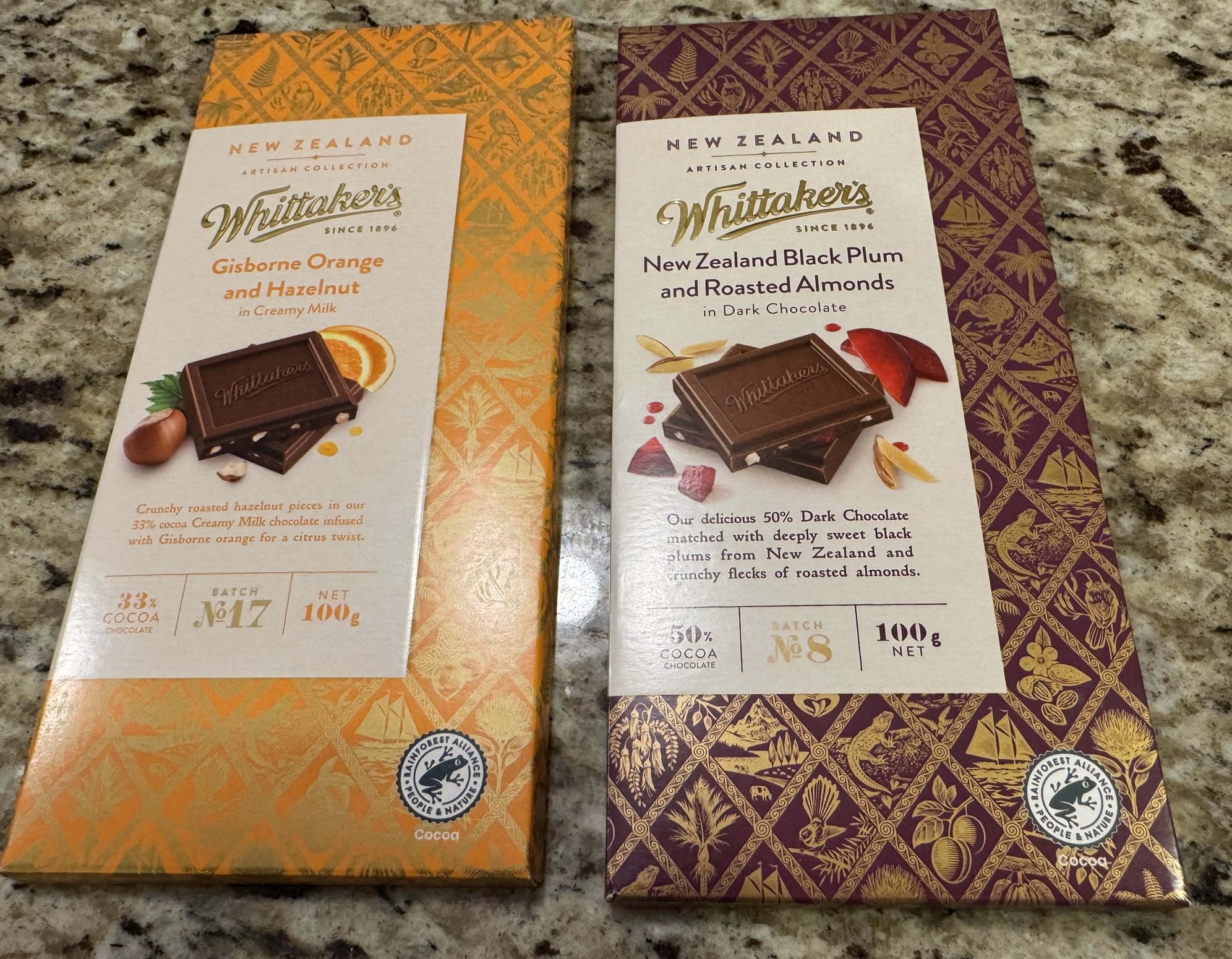 My husband and I are sharing the plum and roasted almond Whittaker's!