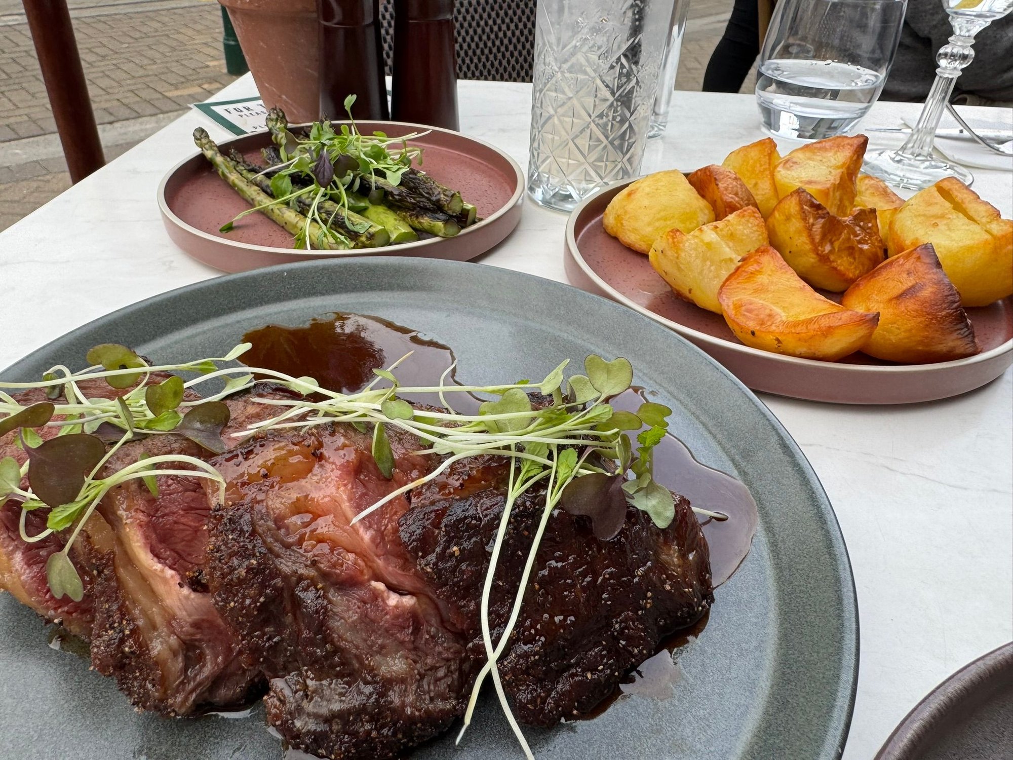 Our hostess, I forgot her name, recommended Fiddlesticks for dinner so we walked there after visiting the gardens. It was a nice evening, Halloween night, so we dined outdoors and enjoyed watching costumed people walking by. We shared a very delicious rib eye dinner for two that came with asparagus and roast potatoes.