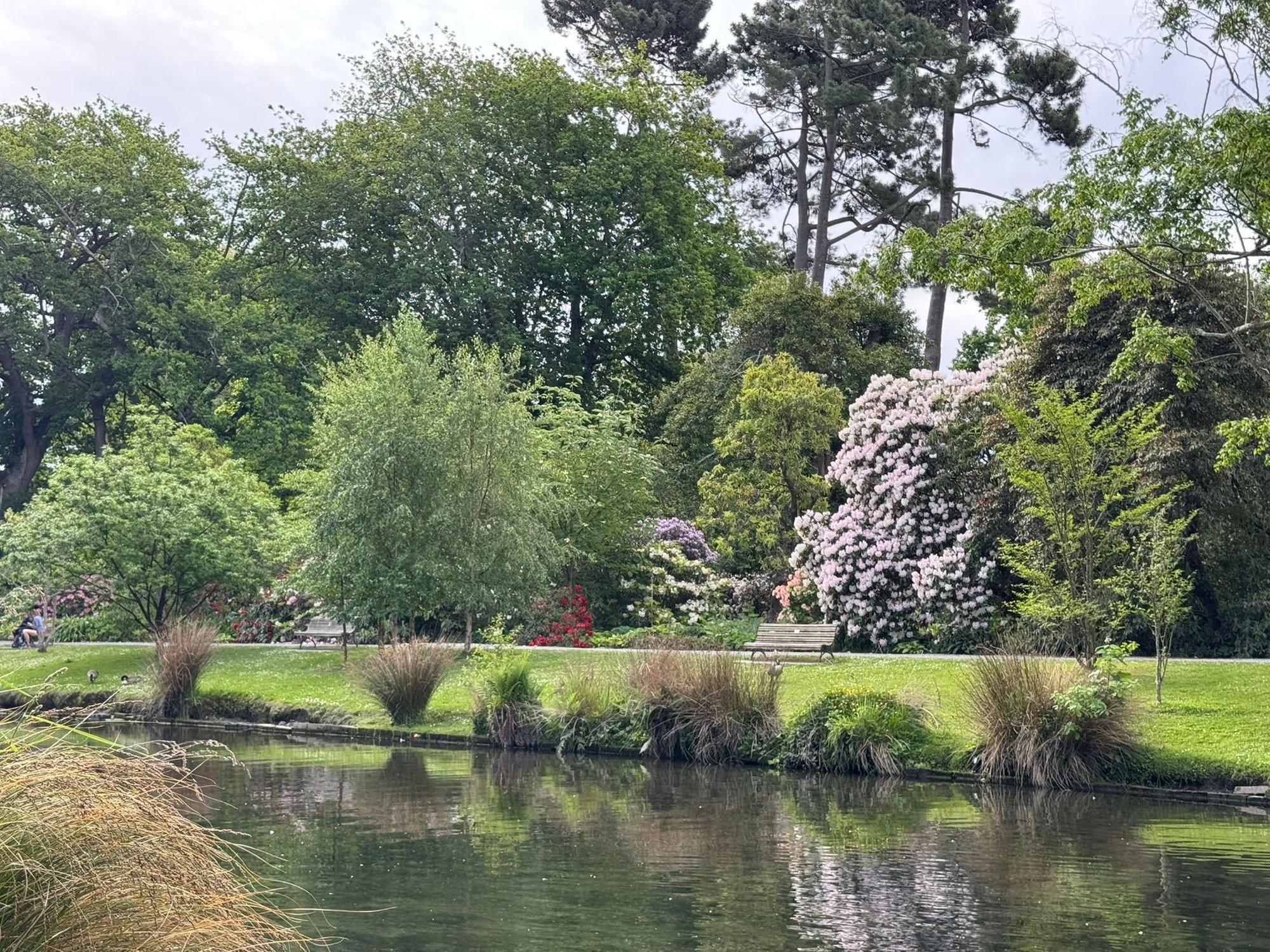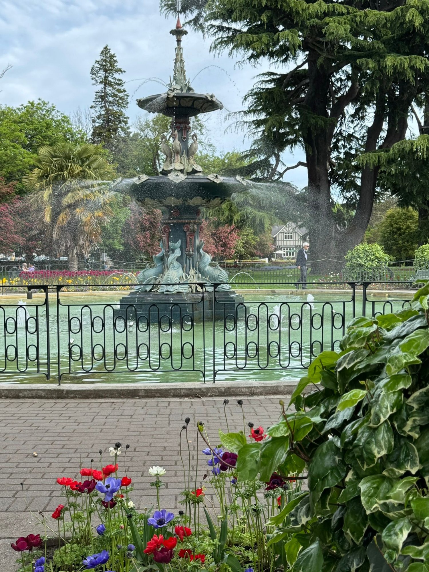 And the location is very convenient. After settling in, we walked to the Christchurch Botanic Gardens just down the street. There is a pretty Peacock Fountain, ducks and geese, and lots of pretty flowers.