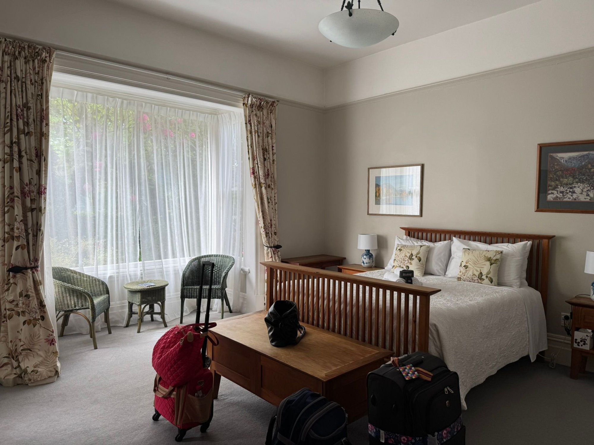 We are spending the night at Orari Boutique Hotel. This is a gorgeous Victorian home that was built in 1893, and has been refurbished with all modern amenities. Our room is on the ground floor (1st floor in the US), and is probably the largest room we have ever stayed in. The only minor drawback is that our private bathroom is not en suite. It is located across the hall. The host gave us a key to our bathroom. I believe all 3 rooms on the ground floor have bathrooms across the hall while the upstairs bedrooms have en suite bathrooms.