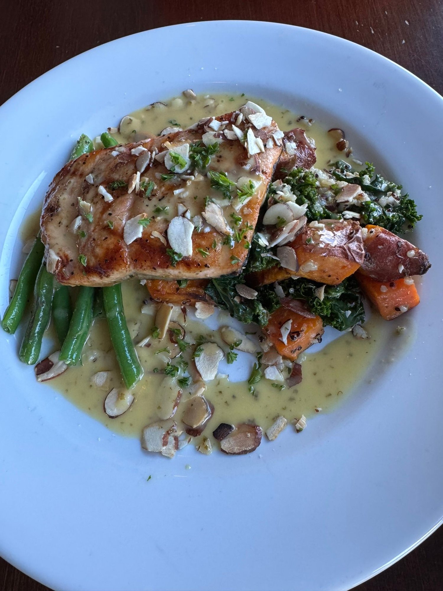 Dinner tonight is at the Chamois Bar and Grille. I had a delicious salmon dinner and Ed had ribs. We shared a decadent brownie dessert with berry compote and vanilla ice cream.