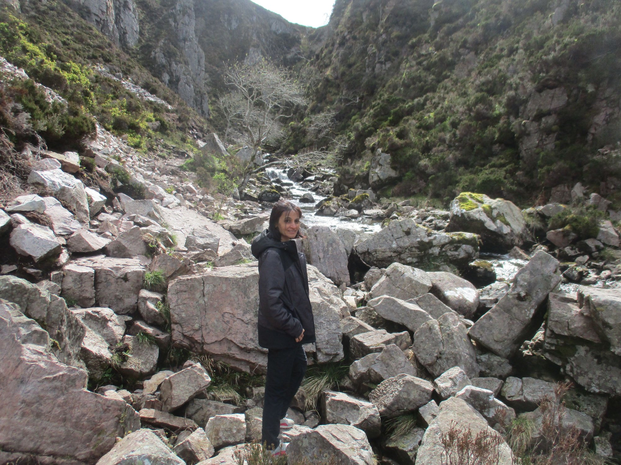 We then drove further up the A894 towards Loch na Gainmhich to trek to the bottom of the Wailing Widow Falls. The falls are set deep inside a ravine strewn with rocks, and tricky to navigate in parts, but very rewarding in the end.