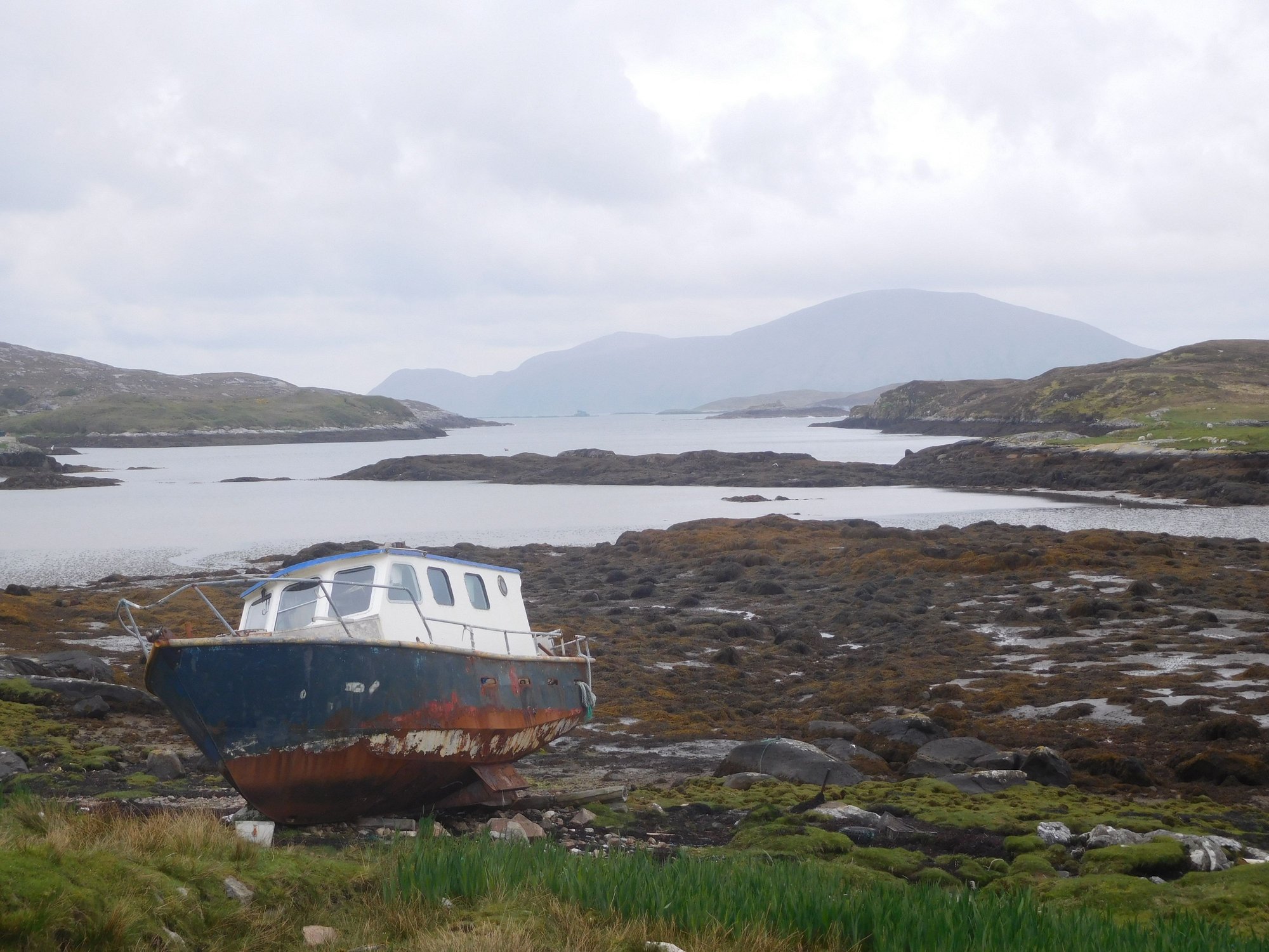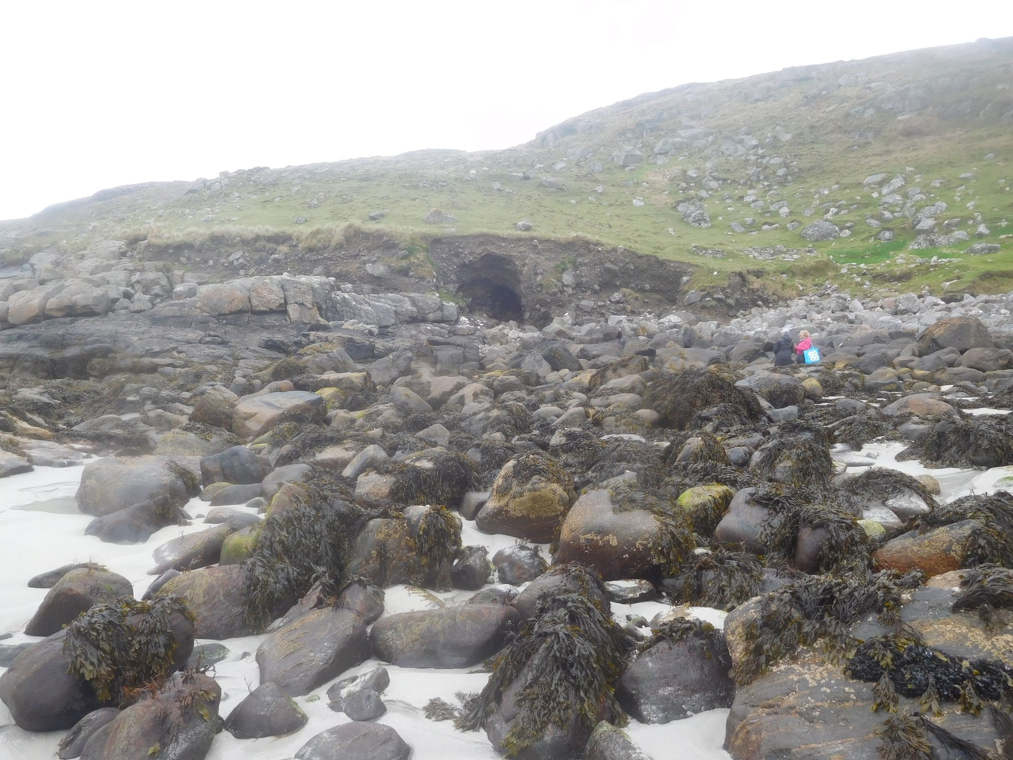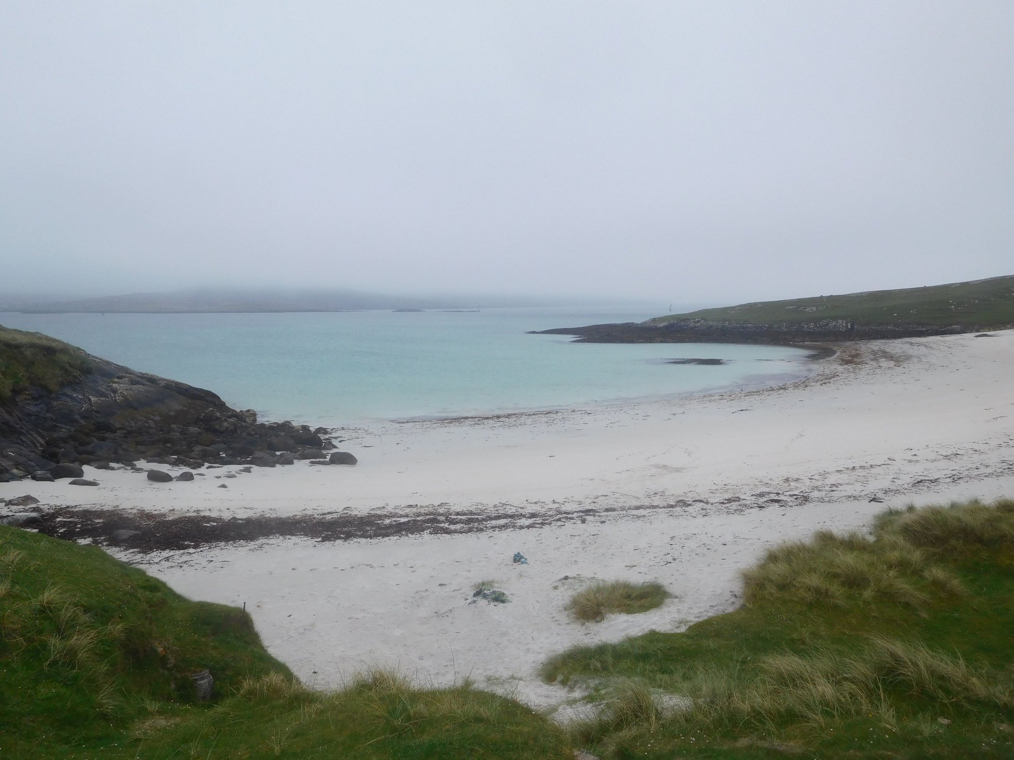 We took the trail behind the Vatersay Hall Cafe leading over the hill to the other secluded beach Traigh Shiar. This is a real stunner and we spent a lot of time there. As we scrambled over some rocks to get to a hidden cove and sea cave, it was heart-breaking to see a beluga whale had washed ashore a week ago.