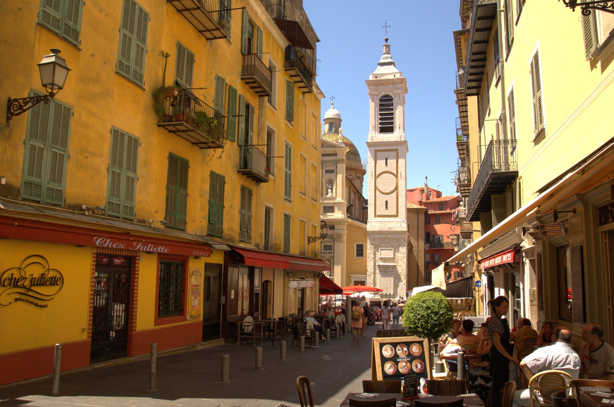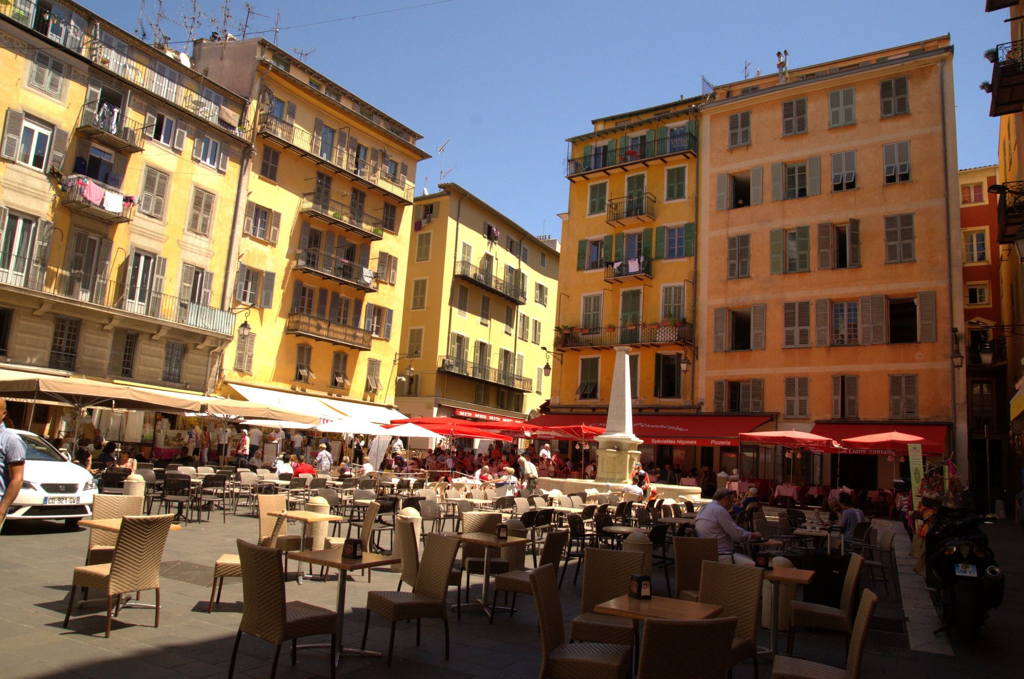 This pedestrian square in Vieux Nice is incredibly pretty; the buildings which surround it are deep red and yellow, restaurants spill out onto the square