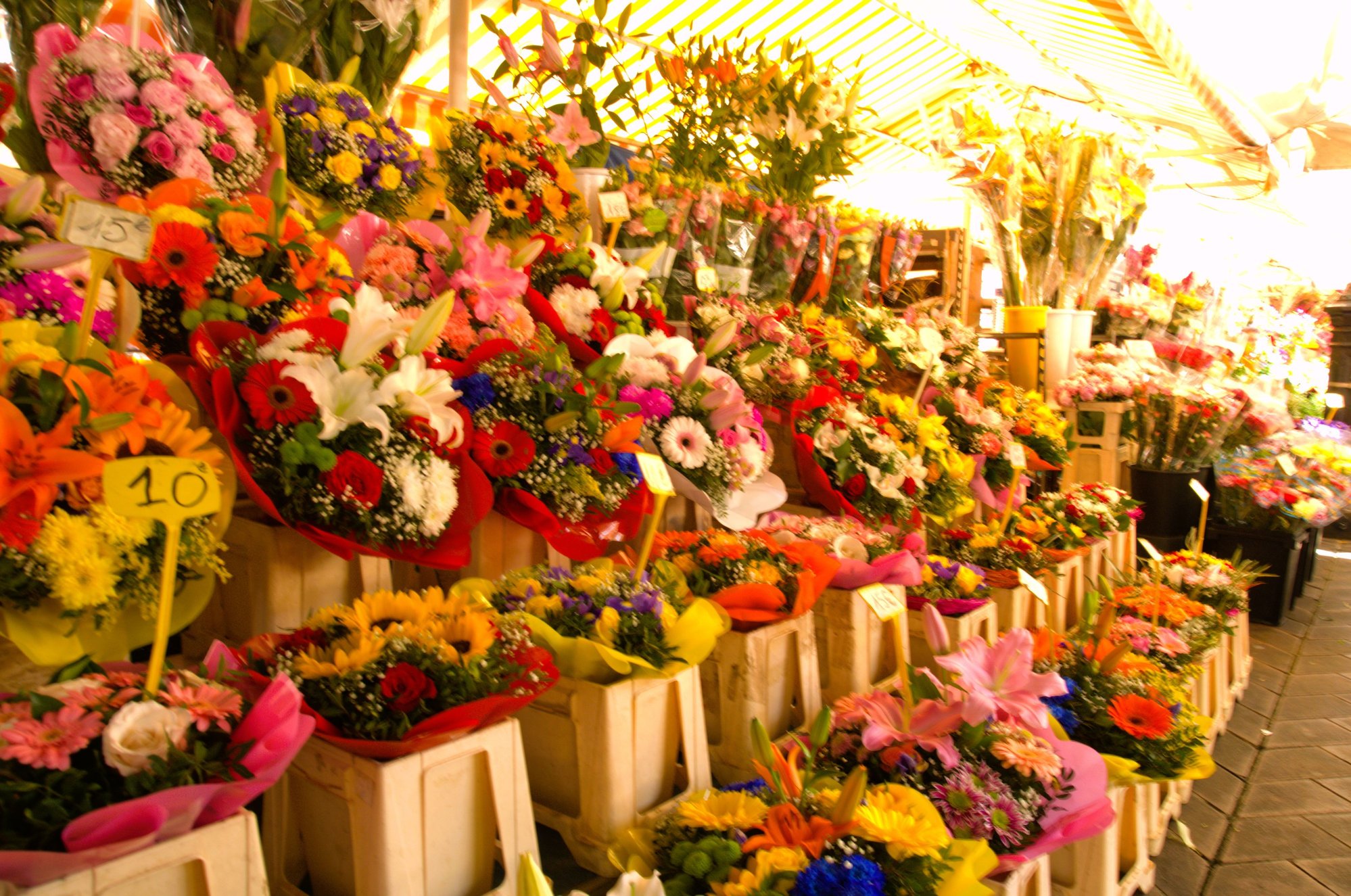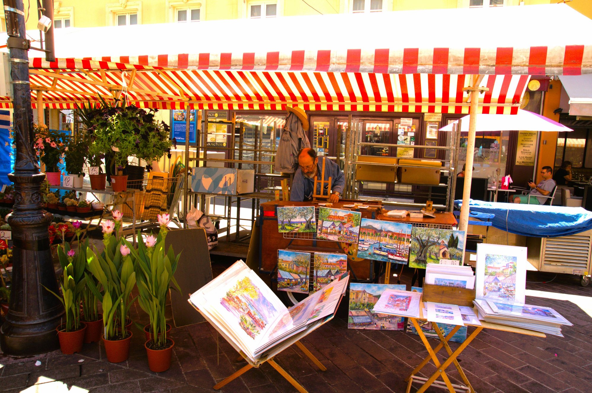 Maybe the flower sellers get this special treatment because of the importance of the flower market in Nice’s history. In 1897 Nice opened the first wholesale cut flower market in the world. The growers in the hills would bring down their cut flowers every morning. After the wholesalers had made their bulk purchases, the market would be opened for individuals to buy their bouquet