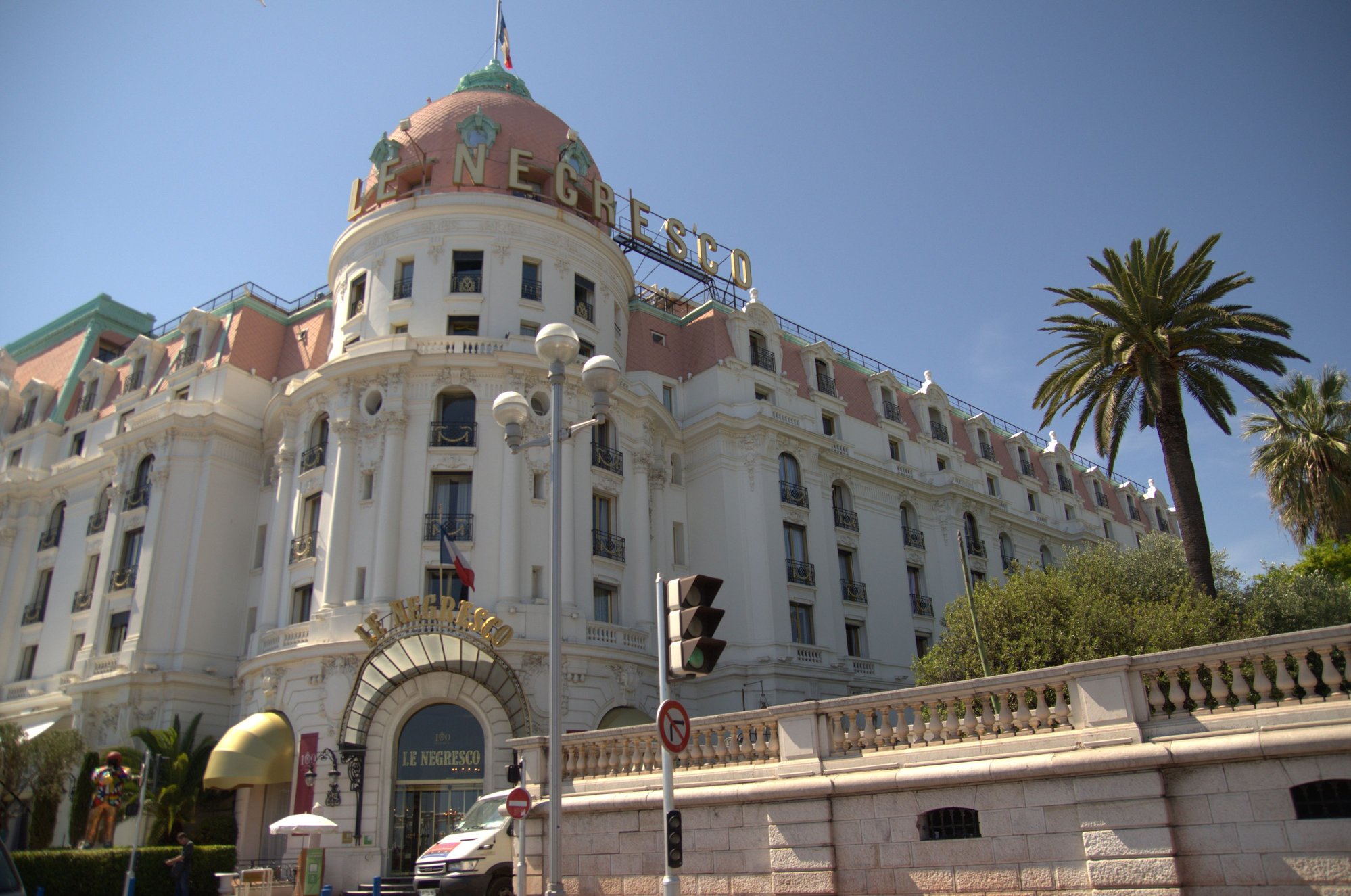 The Promenade des Anglais has been a Nice landmark, a popular place for a stroll with gorgeous views of the sea. The paved walkway stretches for 5 kilometers and is known by locals as "La Prom". It was paid for by wealthy British people who used to spend their winters here, away from the harsher seasonal weather in England. This fact is recognized in the promenade's name. One side is lined with big hotels such as Negresco, luxury apartment blocks, casinos and fabulous restaurants.