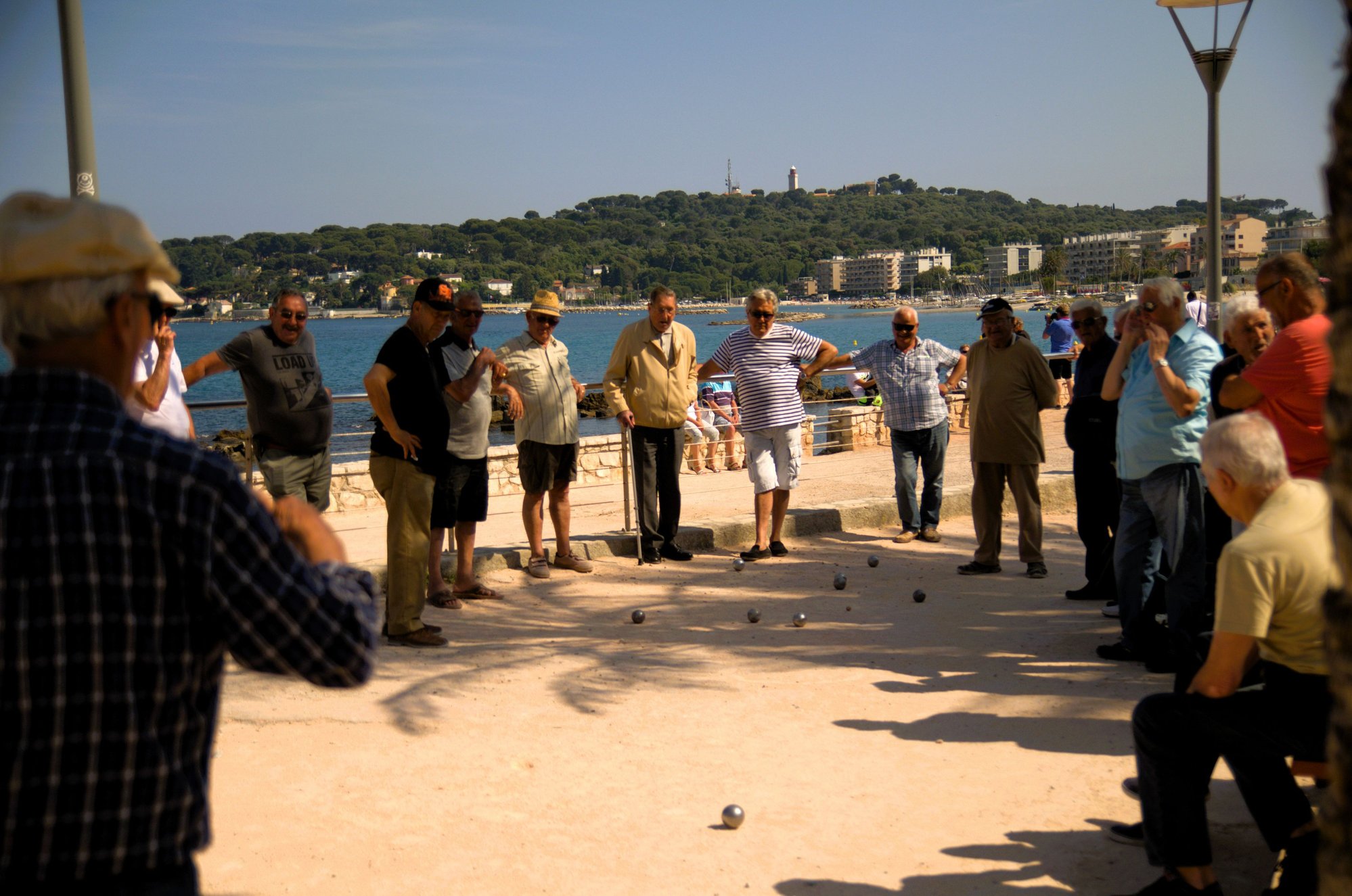 Lucky to witness this game played in the village square by the retired oldies. Quintessential Riviera vibe. Friendly and traditional pétanque, French version of a lawn bowling game, played in parks and on sunny squares throughout Provence with the metal balls, obligatory glass of pastis in hand, pétanque aptly reflects the relaxed lifestyle of southern France. The game dates back many years – before it was called La Longue. Story of Jules, nicknamed “Lenoir”, the inventor of pétanque, dates back to more than 100 years, when the ex-champion invented this when he became almost invalid because of his arthritis.
