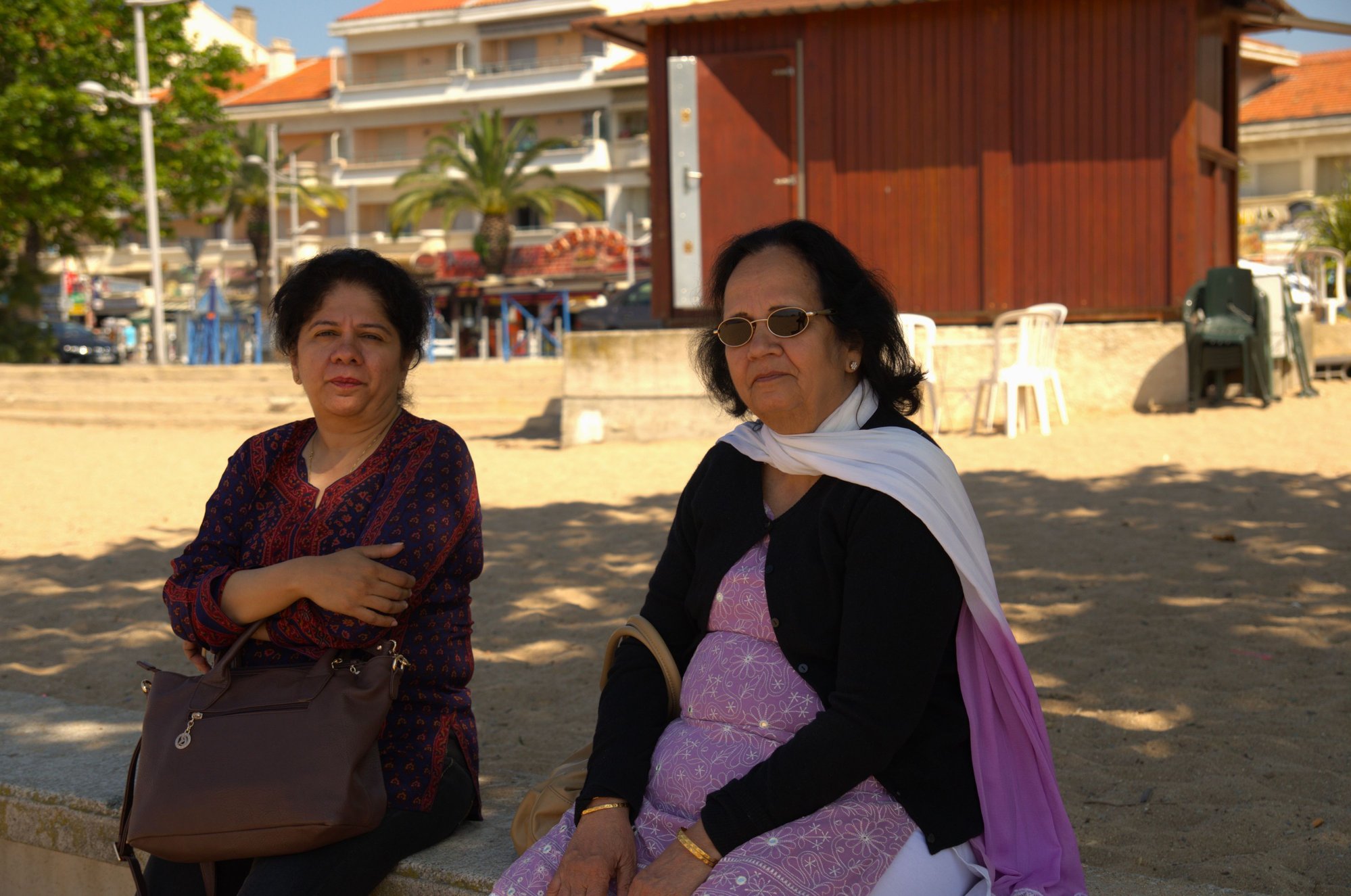 They relaxed in shade there while both my daughters played with the waves.