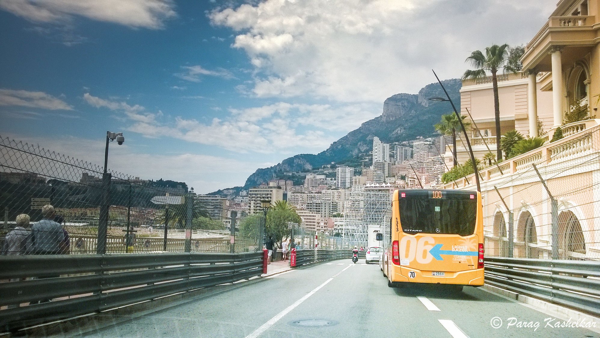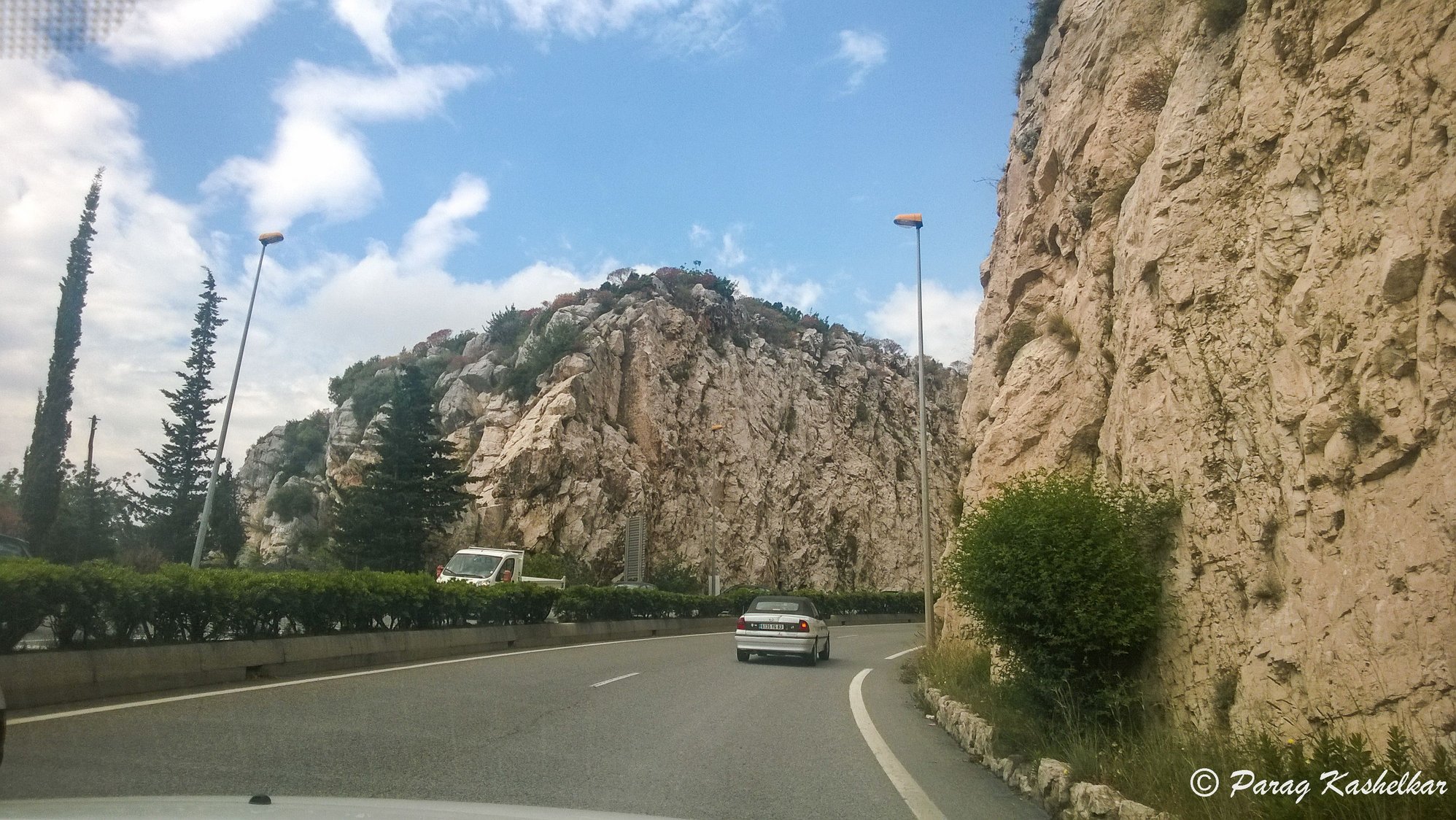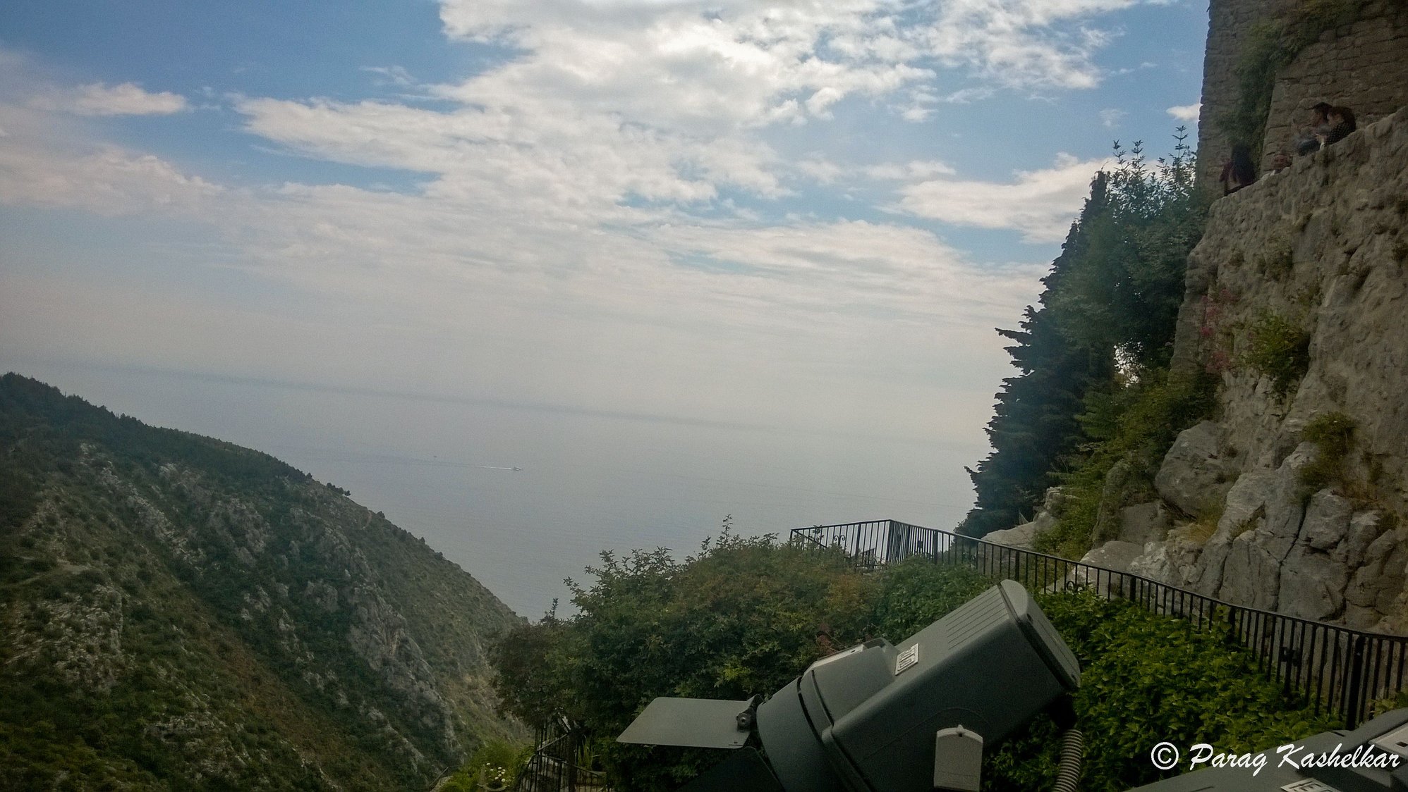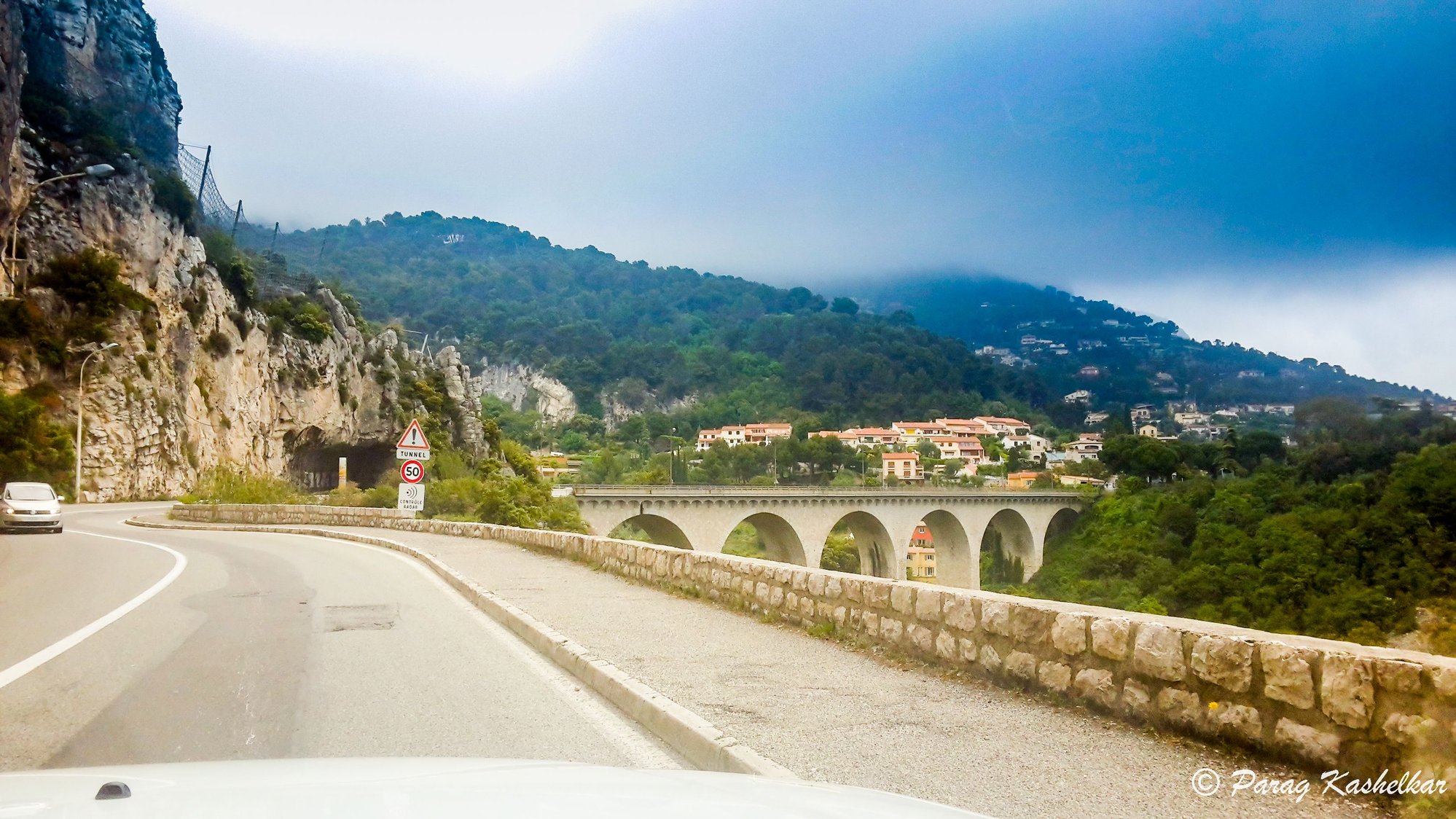 After Nice it is mountainous road with views of picturesque towns and ocean below on the right side and rocky mountain on the right side while going. There is View point on top that has parking space alongside, overlooking a resort town