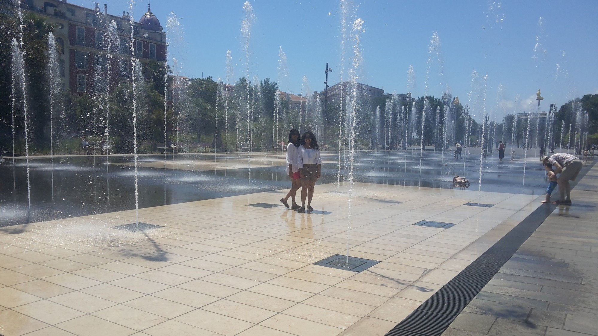 We were treated to a “dancing waters” show with jets of water leaping into the air in time with the music. And then we walked on water. That’s right, all of us walked on water. The basin containing the “mirror of water” is only two cm (less than one inch) deep so when the jets are not in use you can walk right across – some even did this when the jets were on. It was a nice warm day, so no one minded getting wet, especially the children.