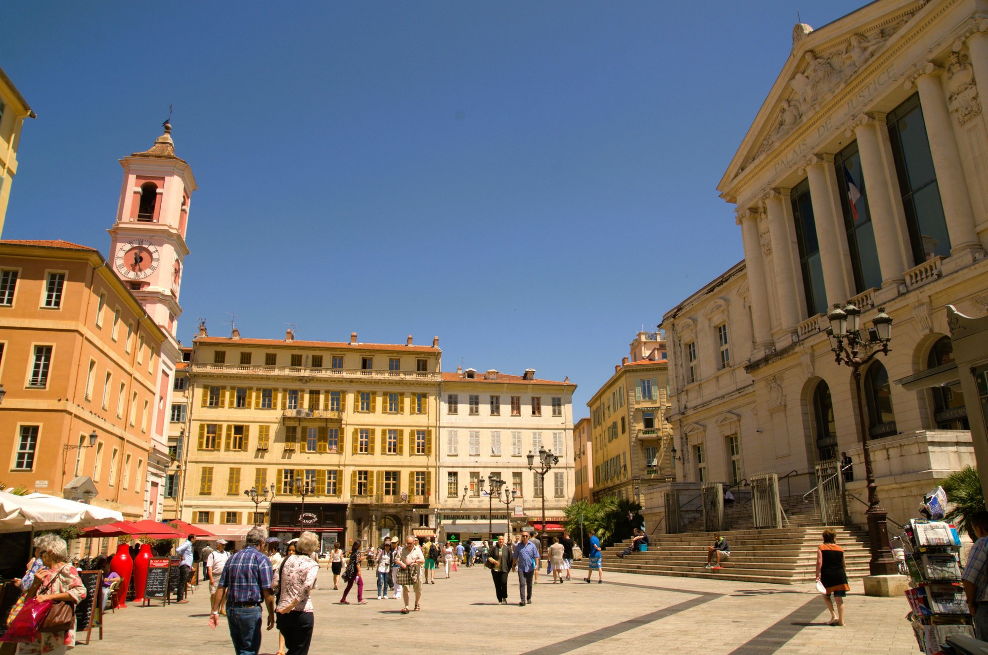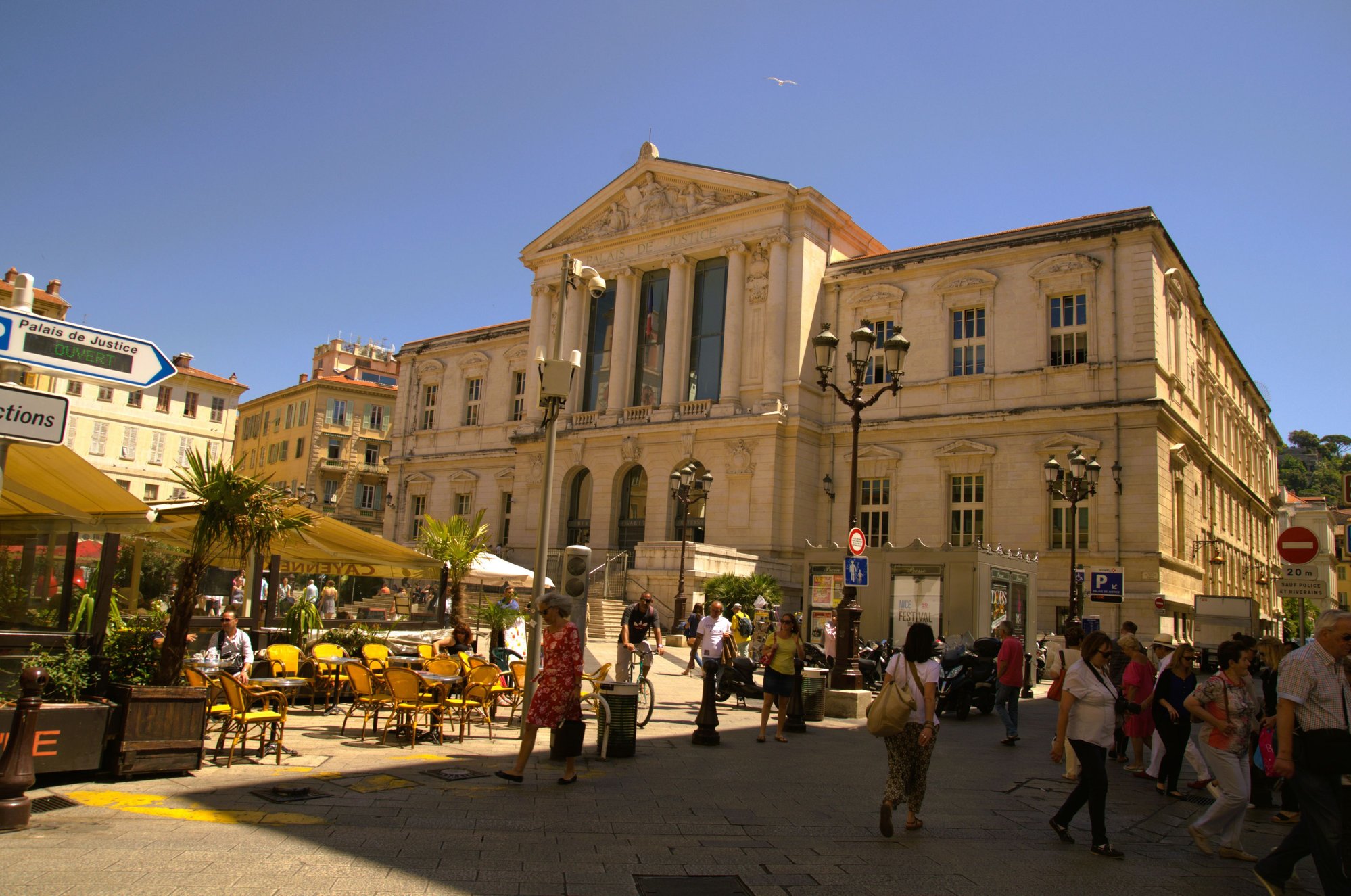 Palais de Justice stands on one of the busiest squares in Nice. It is located in the heart of the city, surrounded by numerous terraced restaurants as well as the Tour de l'Horloge, located next door.
