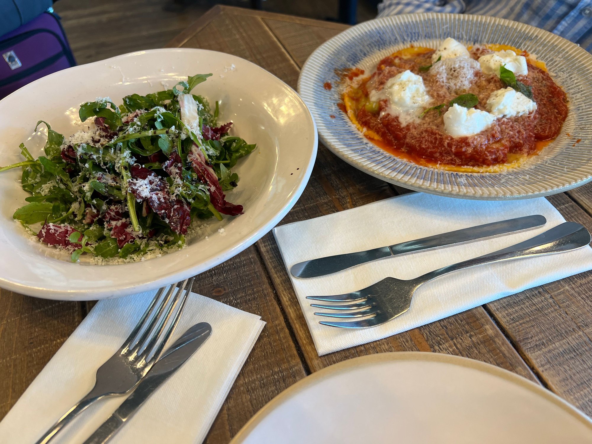 One of our Covid cancellations was a trip to Calabria, and, a couple days ago, we had our brief chance to have a look. We spent this past Friday and Saturday in magnificent Tropea, with its clifftop old town. And, it has many specialties, including a unique variety of red onions that are so sweet, they can be used to make jam; and one gelato place even offers a red onion flavor. This area also offers a spreadable spicy sausage pate called Nduja that is slowly making its way onto menus of US restaurants. And, if you have a sweet tooth, they also offer a different take on gelato called Tartufo, cocoa covered multi-favored scoops of gelato with a gooey chocolate center.