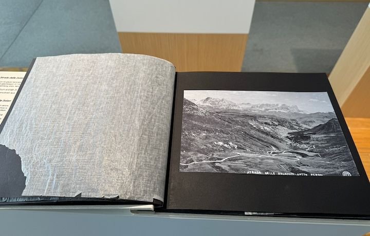 Old book of silver gelatin prints of photos from the Strada Dolomiti (Great Dolomite Road)
