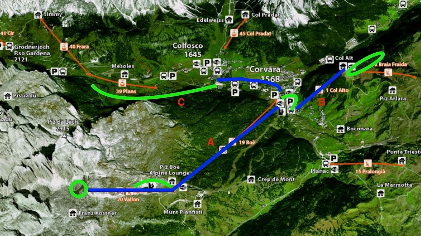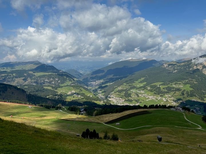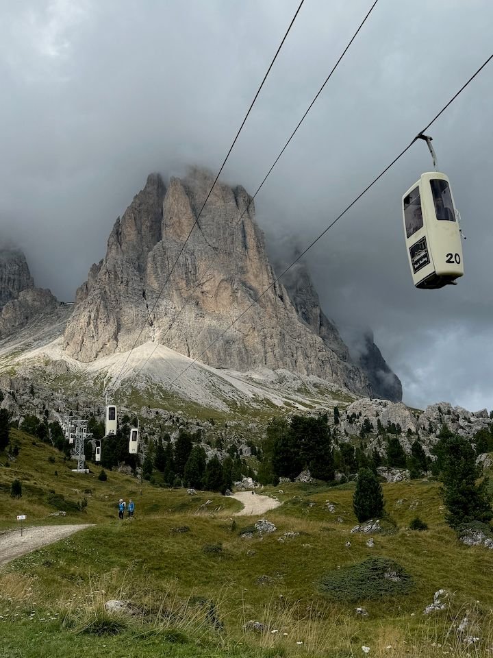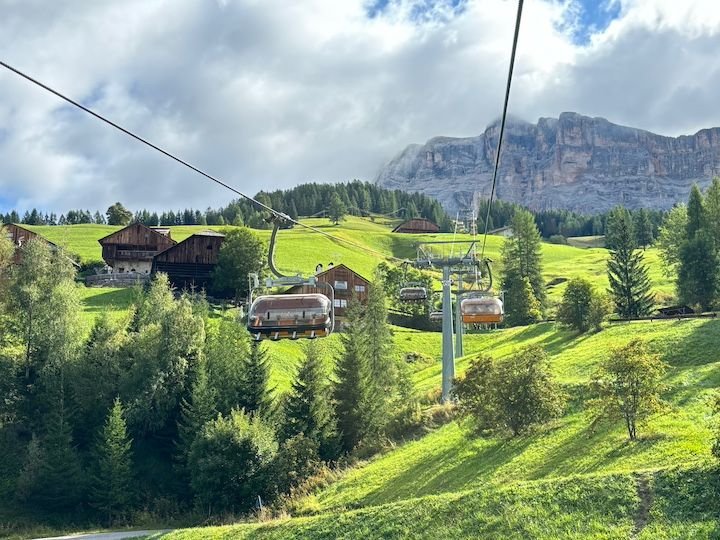 With only a couple of days of weather “certainty” and a pass that covered lifts across the Alta Badia, we wanted to get as much of a taste of our area’s trails and views as we could—while not being as tough on the legs as the day before.