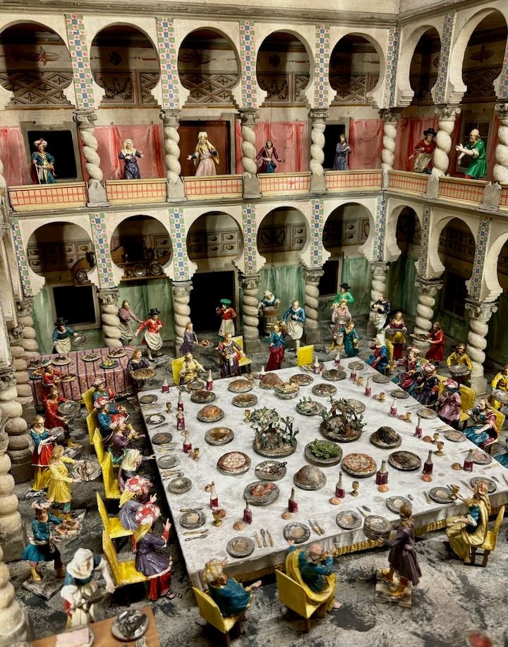 The nativity scene collection includes about 5,000 figurines as well as Christmas cribs from Bressanone, Tyrol, Naples and Sicily. There are literally rooms of these displays, each display in this degree of detail.