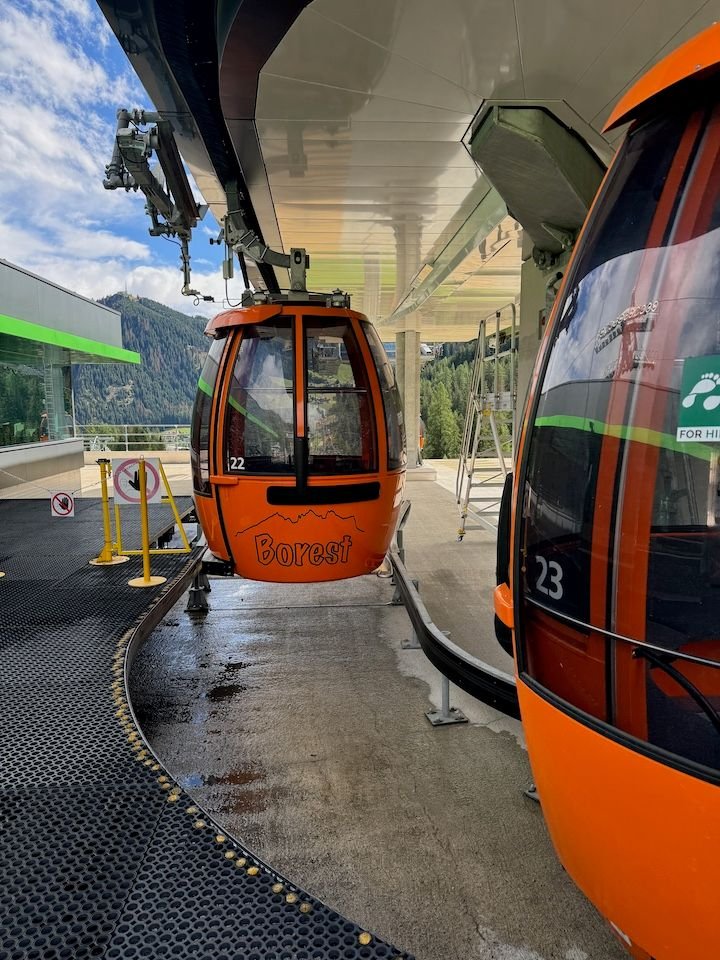 We weren’t sure how we’d get from Selva back to Colfosco. The direct bus only runs a couple of times per day, and our timing wasn’t great. As we passed the Dantercepies lift station on the way into Selva, the lightbulb went on. We could take that lift (different valley—not on our pass, so an extra €17 pp).