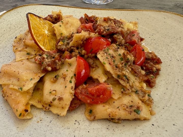 The food here was also a pleasant surprise, including this vegetable focaccia