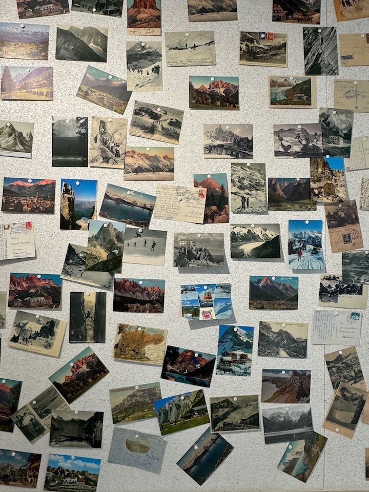 An old postcard from Rifugio Pisciadu, which we can see from our apartment (when the cloud cover isn't too low)