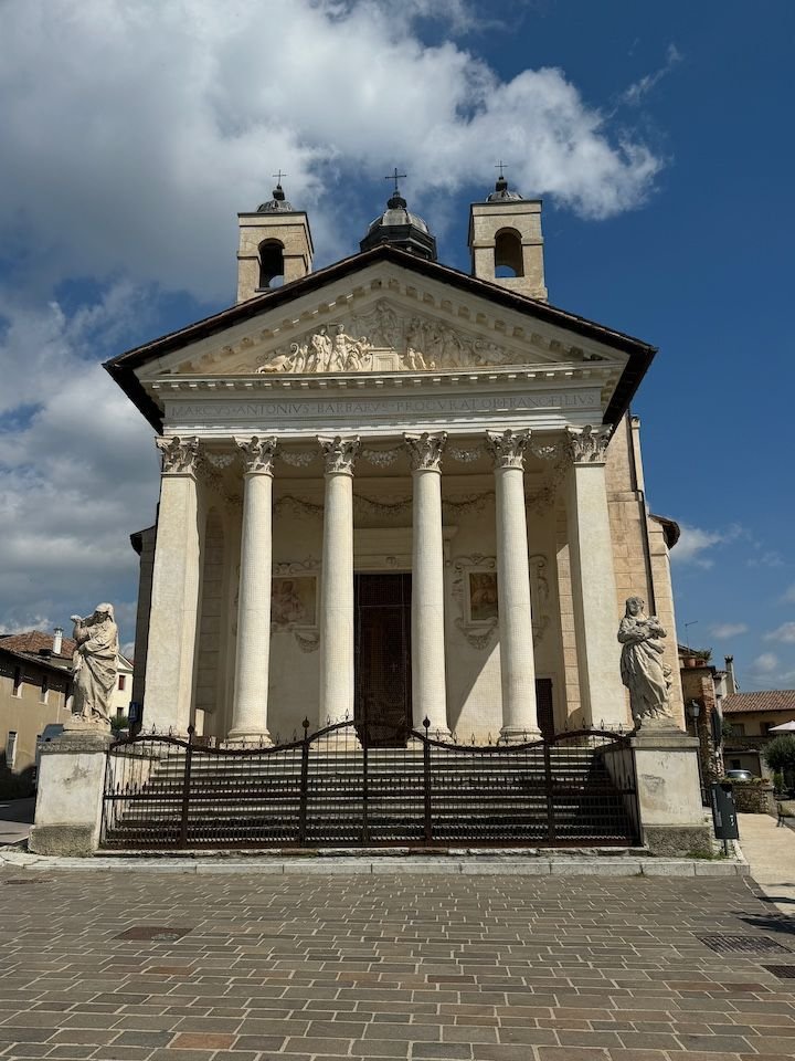 The Barbaro temple, built in 1580, is practically in the middle of the road
