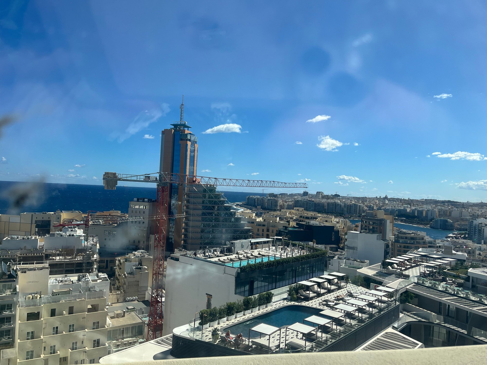 While driving to the Gozo ferry passing through Paceville I noticed the stunning twisting design of a building in the distance. I later learned the building was the Mercury Tower that was designed by Architect Zaha Hadid who tragically died before it was finished. We decided to walk along the lovely promenade from Sliema to St Julian to check out the Tower, the Odyssey Adventure, and had booked lunch reservations there at Toro Toro, too..