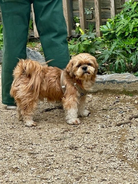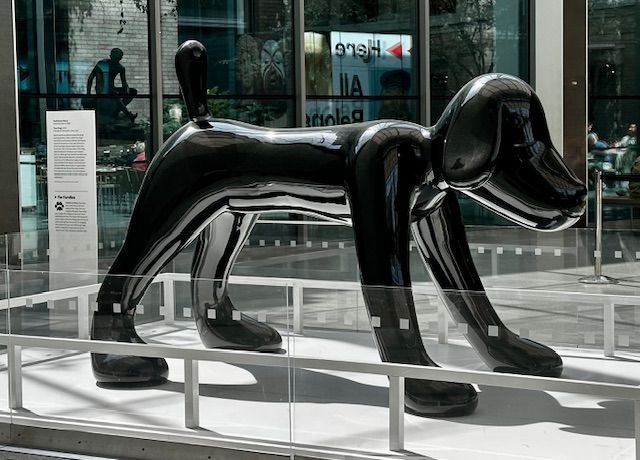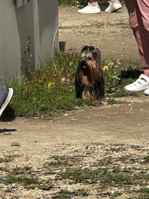 This pup was patiently waiting for his owners to eat their lunch.  My dog would never do this.