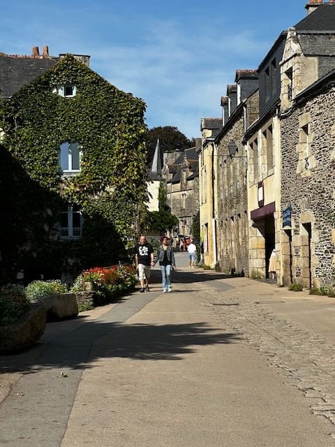 Our plan was to drive to Rochefort-en-Terre. The farms and fields along the way along with horses galloping in their fields made the drive better. Our drive through other small towns was uneventful except Google maps though can sometimes lead you down unwanted roads. We learned this from our last trip that if you are going down a dirt road you should probably turn back.