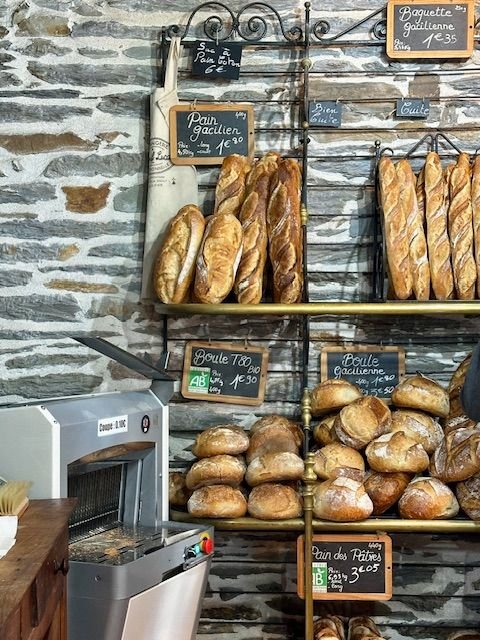 I got up early to walk through town to a Boulanger. The pan au chocolate and croissants being pulled from the oven caught my eye. I joined the queue to order both and a baguette traditional for later. The old stone homes and cobblestone streets were wonderful to wander through in while the town is just waking up. A market was setting up and after breakfast we went down to explore its offerings.