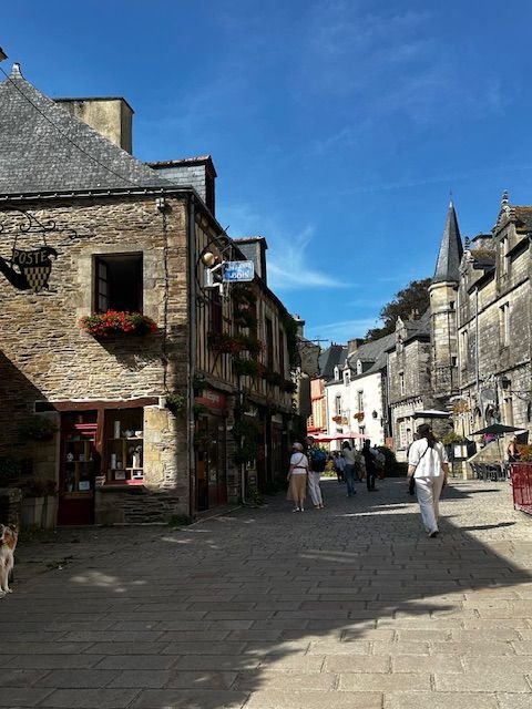 The town was quaint and charming. The vivid blue sky and warm weather helped. Lots of people with their dogs in tow wandering through the town. I must be missing our dog at this point. As we walk around I notice a wonderful smell. It’s a The Kouign-Amann the smell of butter and sugar. No wonder it smells good. It is something that we notice for most of our time in Brittany.