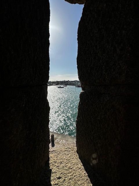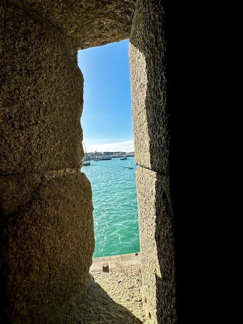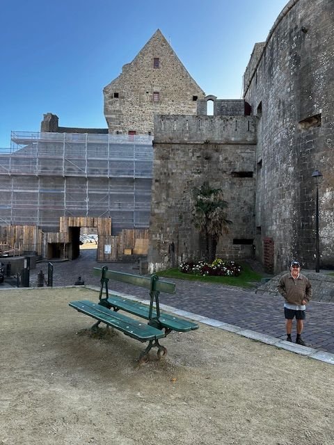 Our next morning was an early drive to St. Malo. The traffic circle gate was closed and traffic was at a standstill. We made a wrong turn into a port area where we fortunately were able to U-turn and get in another line of cars to exit. After about 15 minutes the traffic cleared and the gate opened to get us through the traffic circle. Parking was easy and we were able to find a great spot for some breakfast.