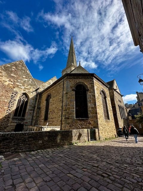 Dinan's historic center is Place des Merciers, still lined with picturesque half-timbered buildings. They date from the time when property taxes were based on the square footage of the ground floor. There were all kinds of stores and I enjoyed exploring the town. I wish we would have had a bit more time to walk along the river.