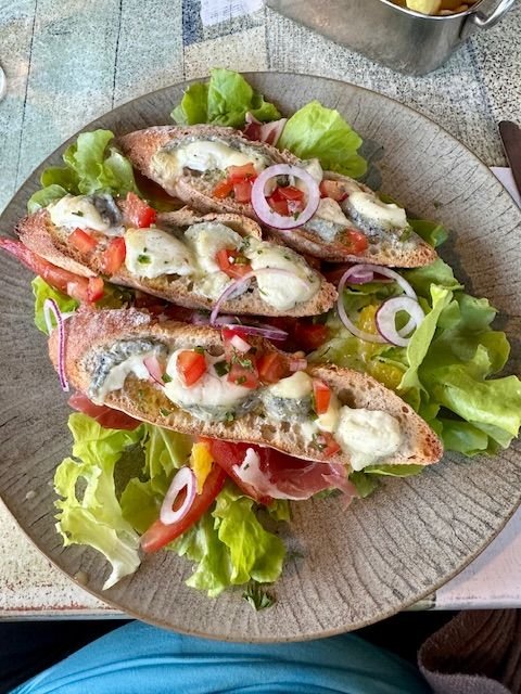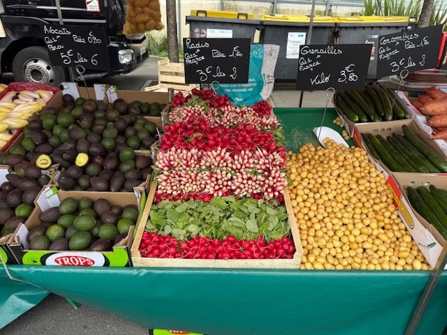 Port en Bessan Huppain was our first stop. It was about a half hour from our Air bnb and also had a farmers market. We explored the town and port a bit and then dove into the farmers market for some things for meals. We ended up buying some goat cheese, salami, veggies, roasted chicken and a baguette from the boulangerie.