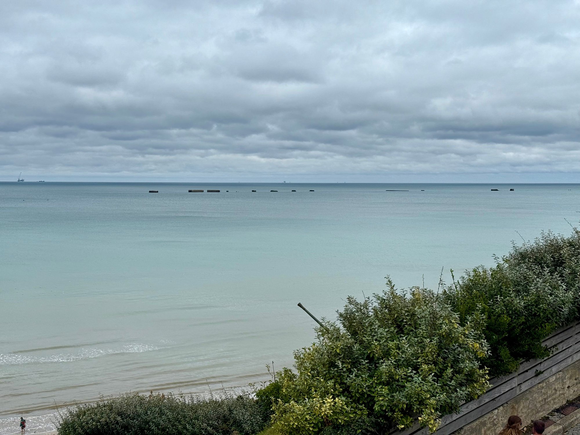 We decided to drop everything back and go out again to Arromanches-les-Bains. This was part of the Gold beach landing areas for the British. It is a beautiful town with a musee and different war displays around the town. We spent some time reading the plaques and exploring the town. The town played an important role for one of two artificial harbors built to help the allied troops in WW2. You can still see part of harbor that was built using Phoenix caissons. Massive, hollow concrete blocks weighing up to 6,000 tons.They were sunk to form the harbor's breakwater and protect it from waves. These were built in secret in Britain and were floated across the ocean. It is really quite amazing. I had to look up why they called them Phoenix caissons. It’s because they were sunk and then floated over to be re-sunk just like the mythical Phoenix rising from the ashes.