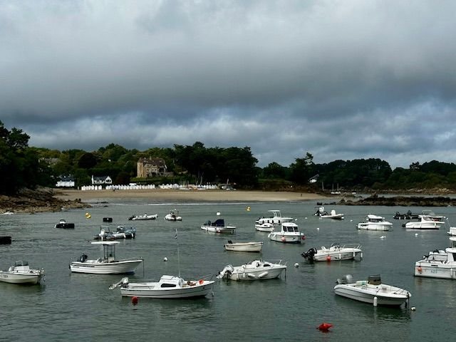 We then drove to Port Manec’h. It was very pretty to see the home that overlooked the water and the boats bobbing in the bay. From there we headed to Port de Trevignon. By then the wind had considerably picked up. We did get out of the car and attempted to go for a walk along the coast, but we’re having to hold onto our hats and brace ourselves from falling over. We decided to head back with the rain starting on the ride home.