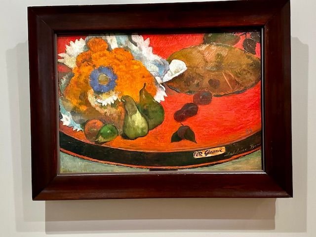 The wind and rain continued the next morning so we lingered over another breakfast. We did make it to a musee and saw some artwork inspired by Paul Gauguin. The museum was founded in 1985 to honor the artists of the Pont-Aven School (1880-1950) and their influence on subsequent generations of artists. The museum is housed in the former Hotel Julia, the headquarters for artists who were drawn to the village's artistic life. Initially a small fishing village, it was popularized by American and other European artists starting in the 1860s who were attracted to its picturesque scenery.