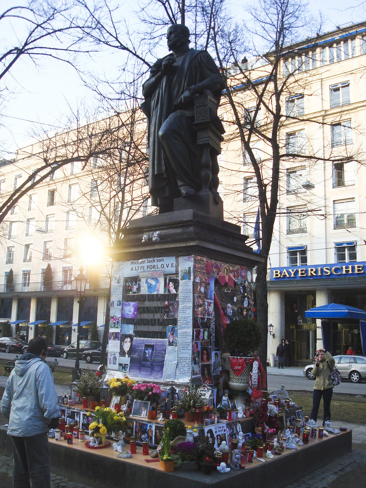 The "self-made" Michael Jackson memorial (if fact, just a statue of a composer which fans "decorated" with posters, candles, flowers, teddy bears and such after the death of Michael Jackson) in downtown Munich did raise a few questions but has become part of the cityscape now.