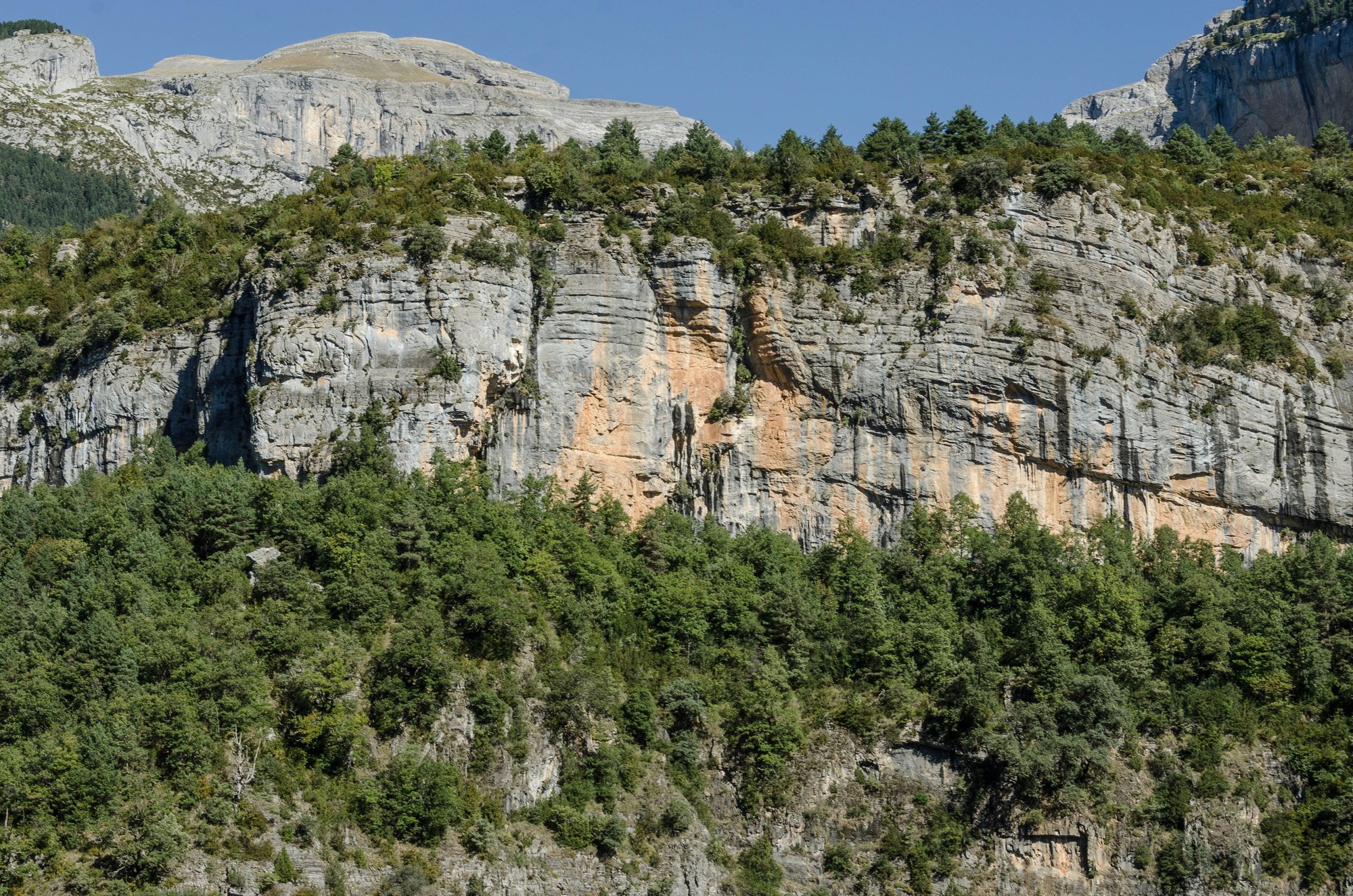 In some parts, the Escuain Garganta ('throat' or gorge) rock face is streaked orange-black. That's why we made the fonts above so coloured. Coming here during shoulder season meant far fewer crowds at the less-popular parts of the park such as Escuain. We saw only two other tourists there. The Visitor Center's gal was glad to see we three. Among the wildlife displays there, was a *'quebrantahuesos' stuffed bearded vulture. Its wingspan was impressive up close! *German: 'lammergeiter' https://cimg6.ibsrv.net/gimg/www.fod...4535285061.jpg En route to the gorge, we went via Puertolas village again (above). That began an uncanny trio of chance encounters for Raquel. First, we waved to her blue-eyed pal Nuria. She and husband are Puertolas' sole occupants off-season, raising cows and sheep. Soon after by complete fluke we bumped into Pep, Raquel's former classmate from Mountain Guide school. He was visiting his nearby vacation rental investment before returning home to Majorca. *Third coincidence below https://cimg0.ibsrv.net/gimg/www.fod...b9cb536c62.jpg *Later in Belsierre, her high school classmate Oscar drove by in his new one-person vehicle! He owns the modern tourist rental village there. The smell of cow manure was extremely powerful in Puertolas above. But those of who were born on farms feel that a multi-sensory approach is essential to grasp the full experience. And seriously, it'd be a great education for kids. https://cimg4.ibsrv.net/gimg/www.fod...5c99345d68.jpg Views and vistas. https://cimg7.ibsrv.net/gimg/www.fod...9203f1aa9d.jpg Escuain village is a ghost town right by the gorge. It was once a well-known butter-producing village. Folks would once barter butter for wine. A scattered collection of crumbling old buildings still exist, like the one shown below. Shown here is Escuain's historic church/mausoleum, its empty hutches the result of expensive rates that apparently drove historic farm families to bury and inter elsewhere. https://cimg2.ibsrv.net/gimg/www.fod...538950e589.jpg See the 'witch's hat' chimney? Beware the evil eye. Btw, one could hear the Rio Yaga far below. No doubt it was utilized by locals in the past. Escuain's rare physiognomy means that it is the park's sunniest sector. The hard-working farmers of yesteryear, with their sweaty shirts and weathered faces would've valued a cool respite on hot summer days. https://cimg5.ibsrv.net/gimg/www.fod...993a89ecb0.jpg Higher elevations are often home to thorny plants, ones which result in excellent local honey. Bees must love these cliffs and canyons. https://cimg6.ibsrv.net/gimg/www.fod...1464809e4e.jpg We'd never seen this rare species before. Any ideas? https://cimg8.ibsrv.net/gimg/www.fod...76d503573f.jpg Escuain village is now attracting some folks intent on restoring buildings as holiday homes. During each fall season, they will continue to experience (as we did) annual 'transhumance' cow migrations, with sizable herds coming down from the mountains. You could hear their cowbells coming down en mase from Tozal de Raton for miles. Whereas France has laws disallowing dogs off-leash in mountain parks, here we saw local tourists allowing their pets to bark at the bovine migration. https://cimg1.ibsrv.net/gimg/www.fod...1319defa56.jpg Would this be a safe mushroom for folks to ingest? https://cimg2.ibsrv.net/gimg/www.fod...b96d288eaa.jpg The pair of mirador lookouts here were closely-located. Bocastiello belvedere had puddles and was muddy. It's boulders nearby had plentiful once-seabed fossils. But the best views of these jagged limestone massifs were from Gratallera. The source of the waterfalls that feed the local rivers is a mountain cave located 1,000 m deep inside the cliff seen here. Above: Circo de la Sarra. https://cimg4.ibsrv.net/gimg/www.fod...3712605bf6.jpg Back in Solomonte's Escalona HQ basement, Raquel and Juancho operate a climbing wall activity to train kids. One of those children is the daughter of the couple who own Usana's aforementioned Dos Arcos B&B. Next: Lofty Pineta valley |
