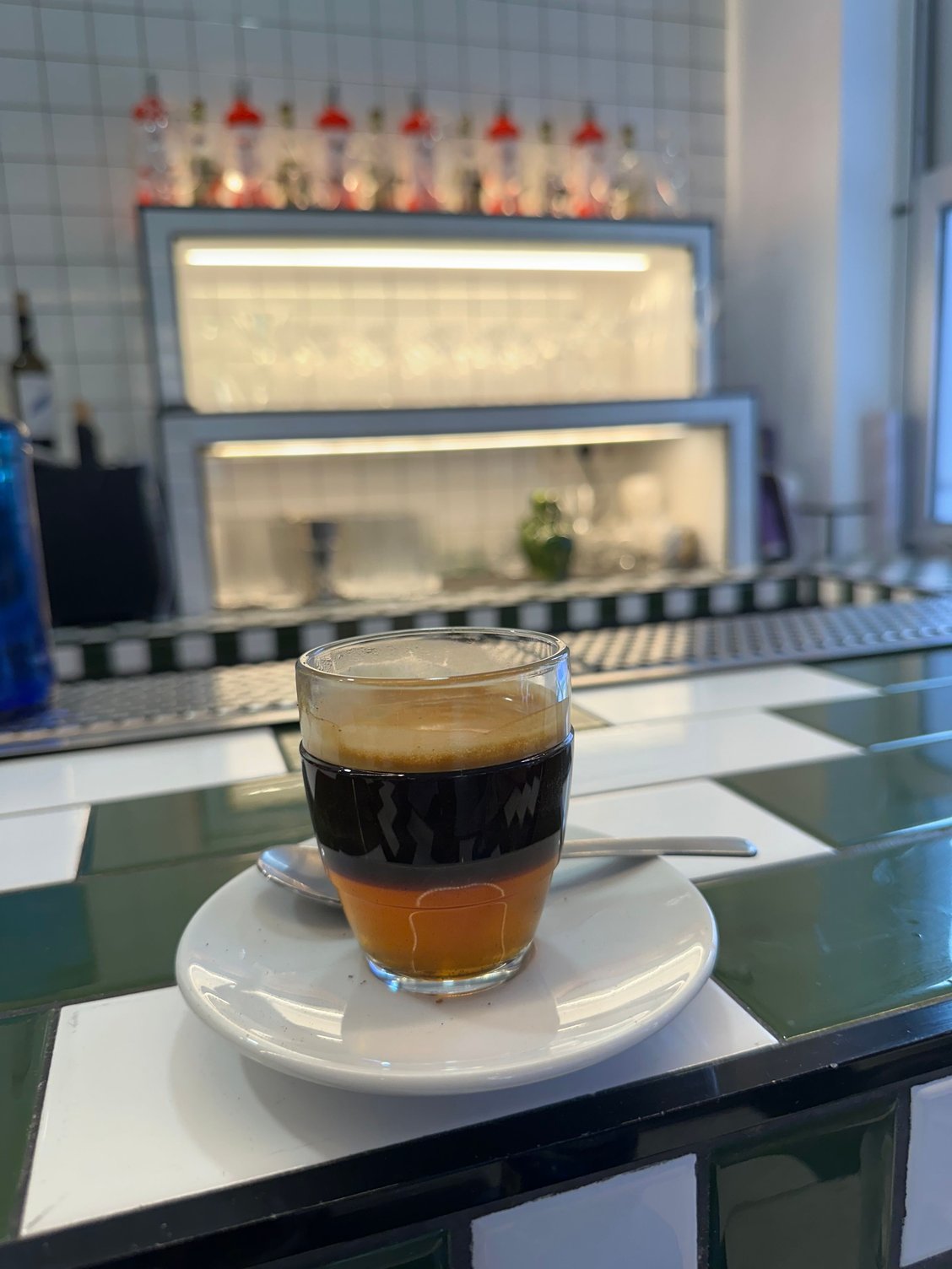 Then we made a quick stop at La Sastreria, which is just down the street. It was already almost 3 pm when they close lunch. After some pleading, they let us sit at the bar for a digestive. This turned out to be fortuitous as we had a great view of the fish on display behind the counter, varieties that I’d not seen before! A fish called borriquete and another called breca, which appeared to be a Royal Dorade. See pic. In addition, we saw the bartender whip up a coffee + liquor drink called Cremaet, a Valencian coffee made with espresso, brandy, sugar, lemon/orange peel, and cinnamon. All of it is vigorously stirred into a small jug and then set alight while the bartender keeps stirring. It was a delight to watch and a tasty way to finish our first lunch in this city!