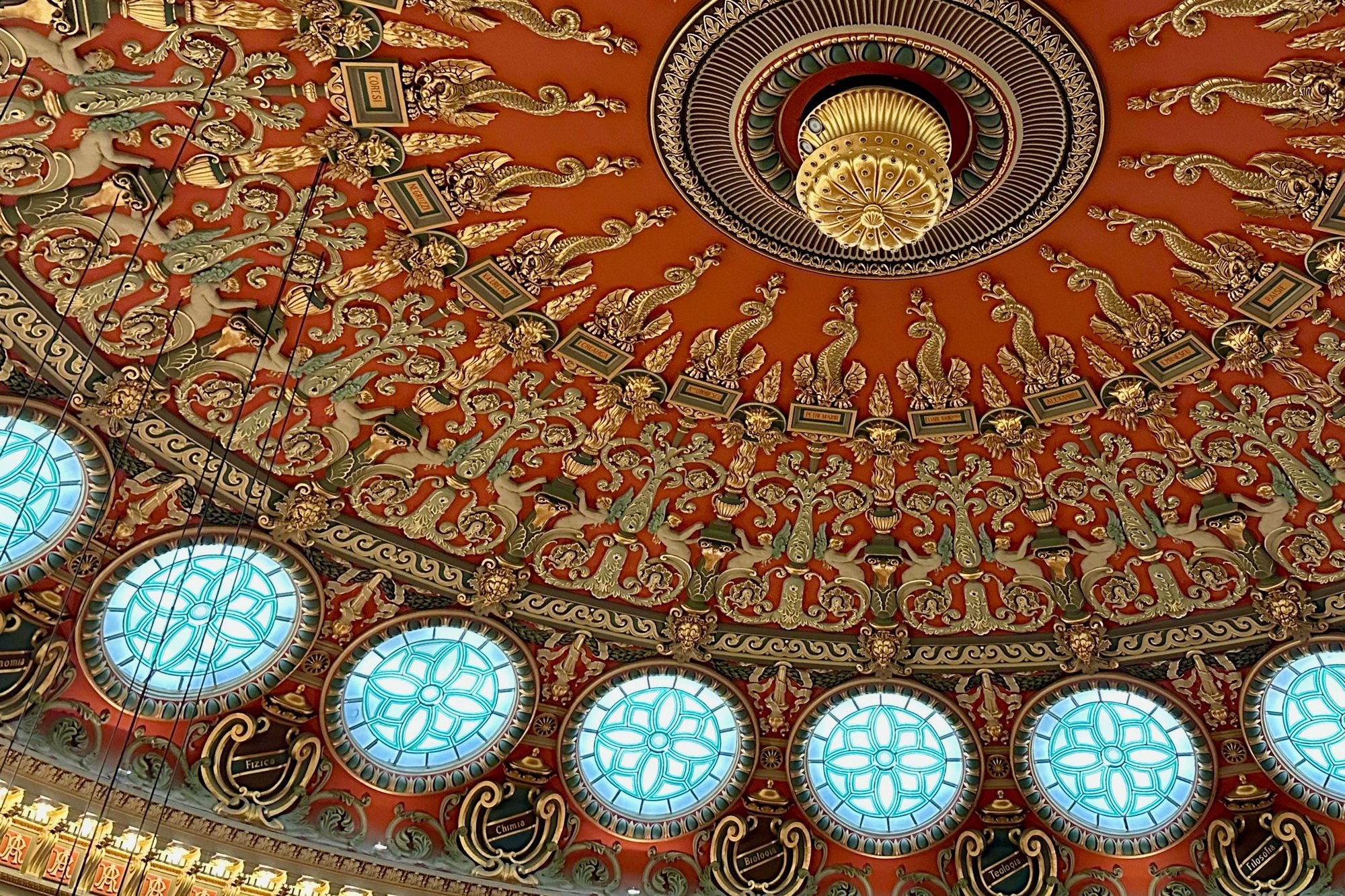 And last, but not least, I attended a glorious concert at Bucharest’s Ateneul Roman. It’s a beautiful theater and the performance was memorable, featuring the George Enescu Philharmonic Orchestra and several solo celloists. This photo shows the dome over the main concert hall: