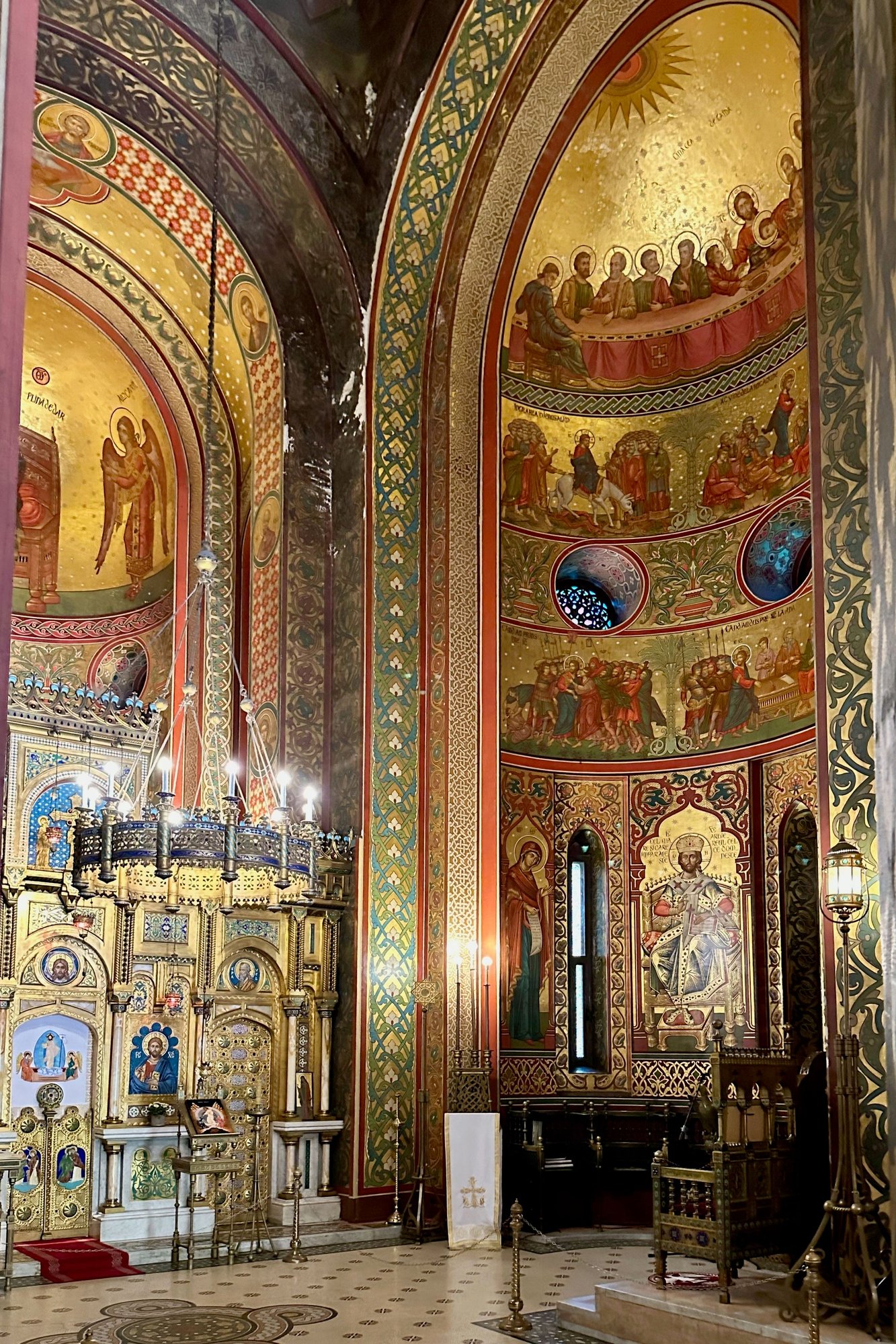Of course, there were many exquisite Byzantine works in addition to the amazing exterior frescoes already described. Here’s a photo of the interior of Mănăstirea Curtea de Argeș:
