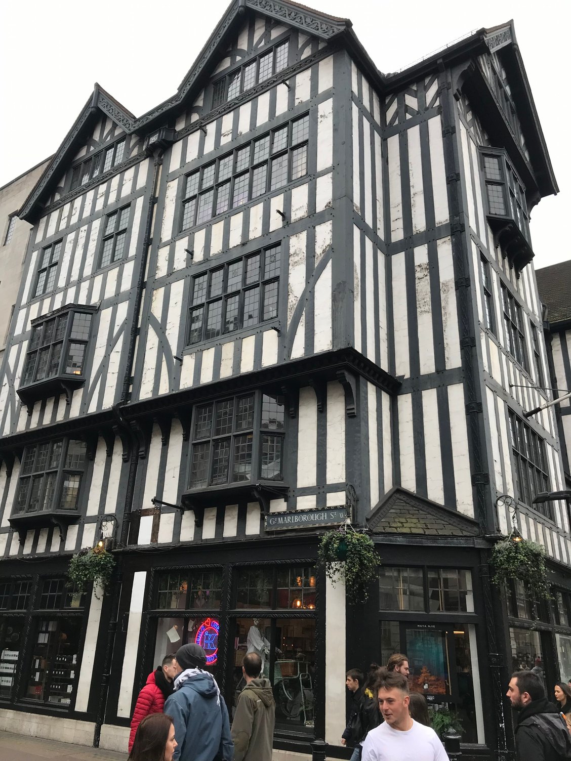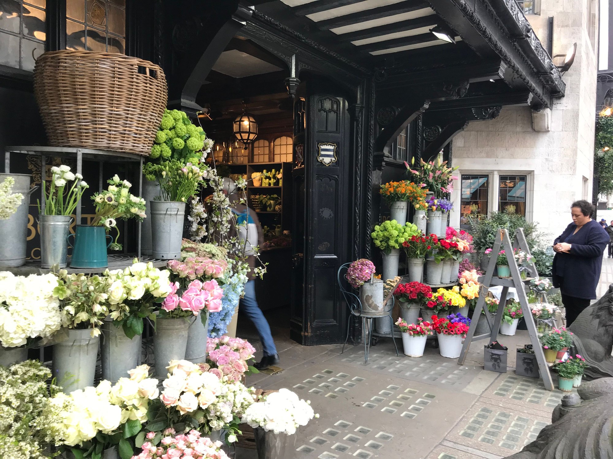 Both did not disappoint! No beans with the full English (well you can buy them) but no problem. My sandwich was so very good. I could eat that every day. We left fueled for a little more strolling, we hit Carnaby for a bit and then headed to our first stop, Liberty. I love the timbered exterior of the building. Inside I was looking for their printed scarves. I also found some McQueen scarves that they did not have at the McQueen boutique. It was busy in the store but not packed. I decided on a pink/purple paisley pattern Liberty scarf, a black and white Alexander McQueen scarf and a pink and black skull McQueen scarf for my sister.