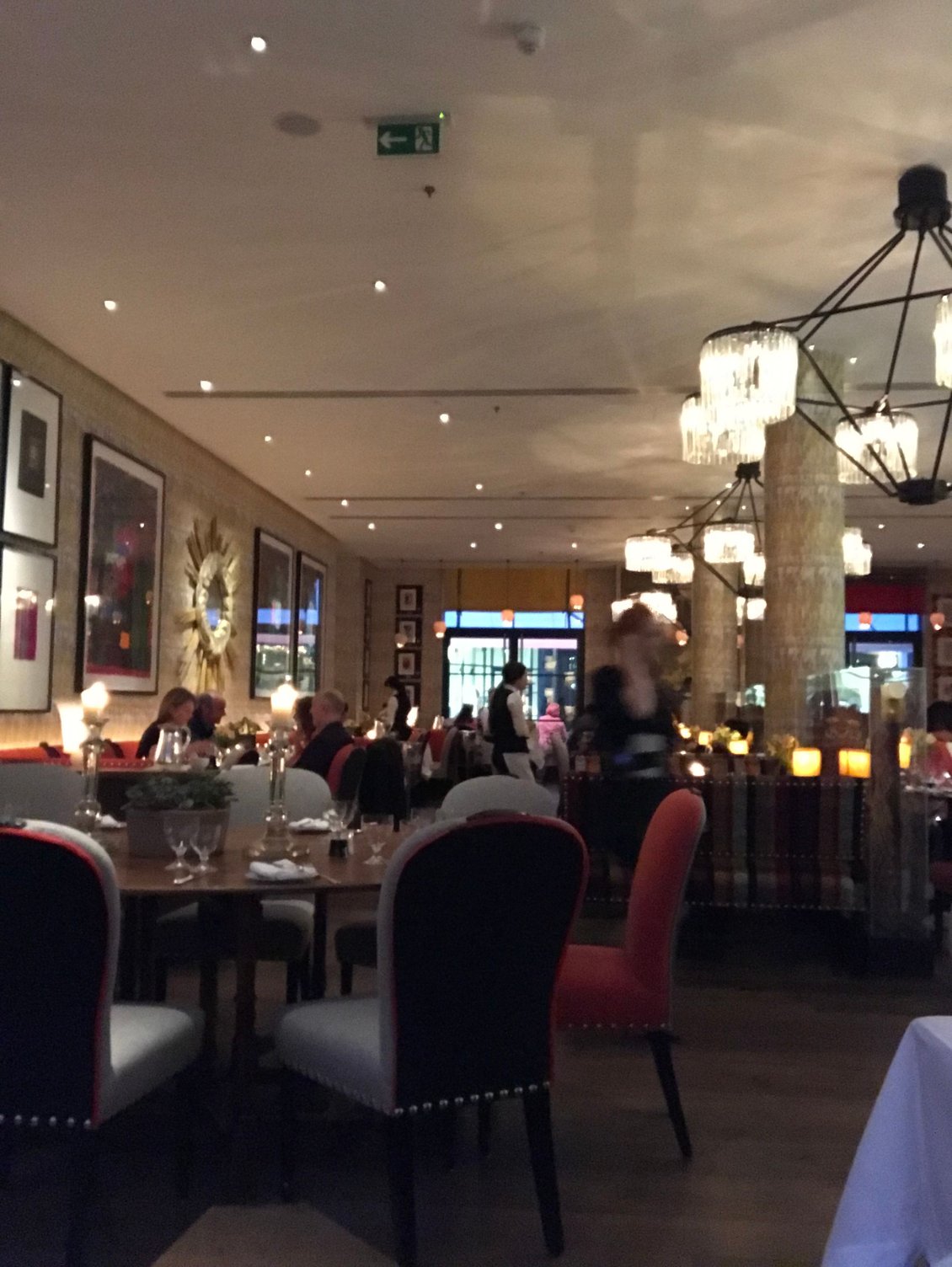 We got our table and that’s when things turned. I was served completely flat Champagne. I hate that. You can see that there are no bubbles. I called the waiter over and they corrected it immediately and brought a fresh bottle out and opened it at the table. Problem solved. Back on track! Chaz started with a few oysters and he enjoyed them. Dinner - Chaz tried the fish and chips and I got roast chicken. Fish and chips – very good. Roast chicken – completely dry. I asked if the serving would be a quarter chicken but it was a leg and a breast (not sure what happens to the thigh). The leg had some sort of stuffing in it and that was OK. The breast was just overdone and dried out. The potatoes looked good but also were dry. They kinda seemed like they were dried out from the oven, so they fried them to revive them? Sahara special would be a better name for my dinner. Bummer! This is a pretty noisy spot and that’s OK. Our server had too many tables and they played loud jazz music (which we are not fans of). The restaurant is noisy and the rambling jazz over the top of the noise doesn’t work. It’s frenetic rather than energetic. As we sat there, it just got hotter and hotter in the restaurant. Not our best night.