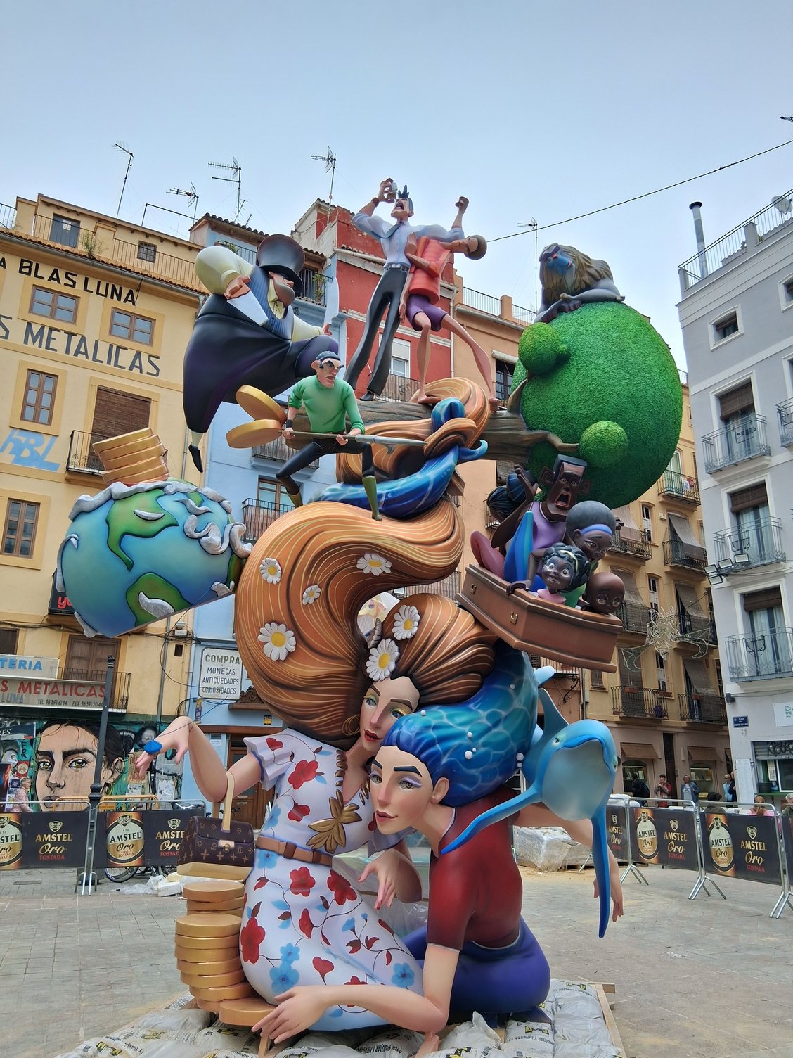 Being in Valencia during Las Fallas is a mixed blessing. It is such an interesting and unique event. But it definitely impedes regular activities. Many streets are closed and there are big crowds. After braving the crowds downtown one time, we stuck to our local neighborhood where there was certainly a lot going on. Every couple of blocks there is a Falla creation on the street or in a square. Some are very large and complex, others smaller and aimed at kids. Some are very political, others funny. Every Falla is sponsored by a local Fallas club and those clubs are constantly celebrating and partying - parades, lots of firecrackers, dinner and dancing in tents in the middle of closed off streets.