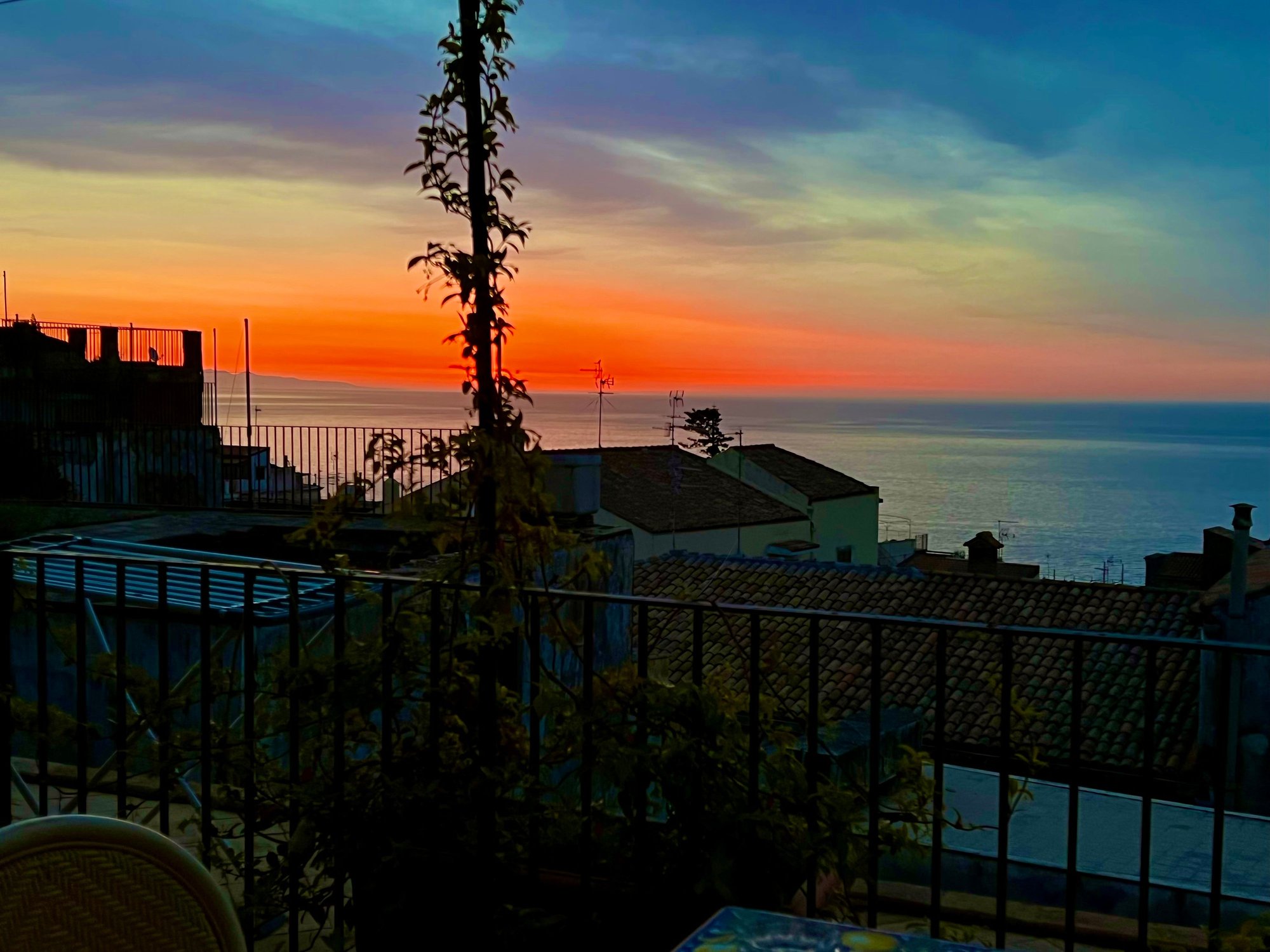 By the time, we got to Acireale and started the hunt for our apartment and parking, I was a little stressed. We found a pay lot a few blocks from our apartment that was in an old Palazzo. Our landlady, who could speak about as much English as we could speak Italian (next to none), quickly gave us a tour of her magnificent and beautifully decorated Palazzo. The ceiling frescoes looked new. Our apartment was in the back, away from the narrow busy road in front of the building, overlooking the sea, and there was a shared rooftop terrace (although we were alone there for our sunset glasses of wine) looking out onto the cathedrals and Mt. Etna.